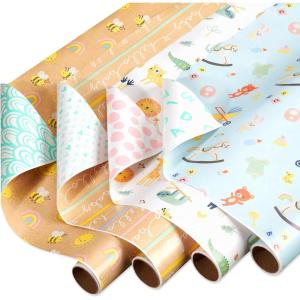 American Greetings 175 sq. ft. Reversible Wrapping Paper for Baby Showers, Kid’s Birthdays and All Occasions, Moon and Stars (1 Roll, 30 in x 70 ft.)(Polka Dots and Animals)