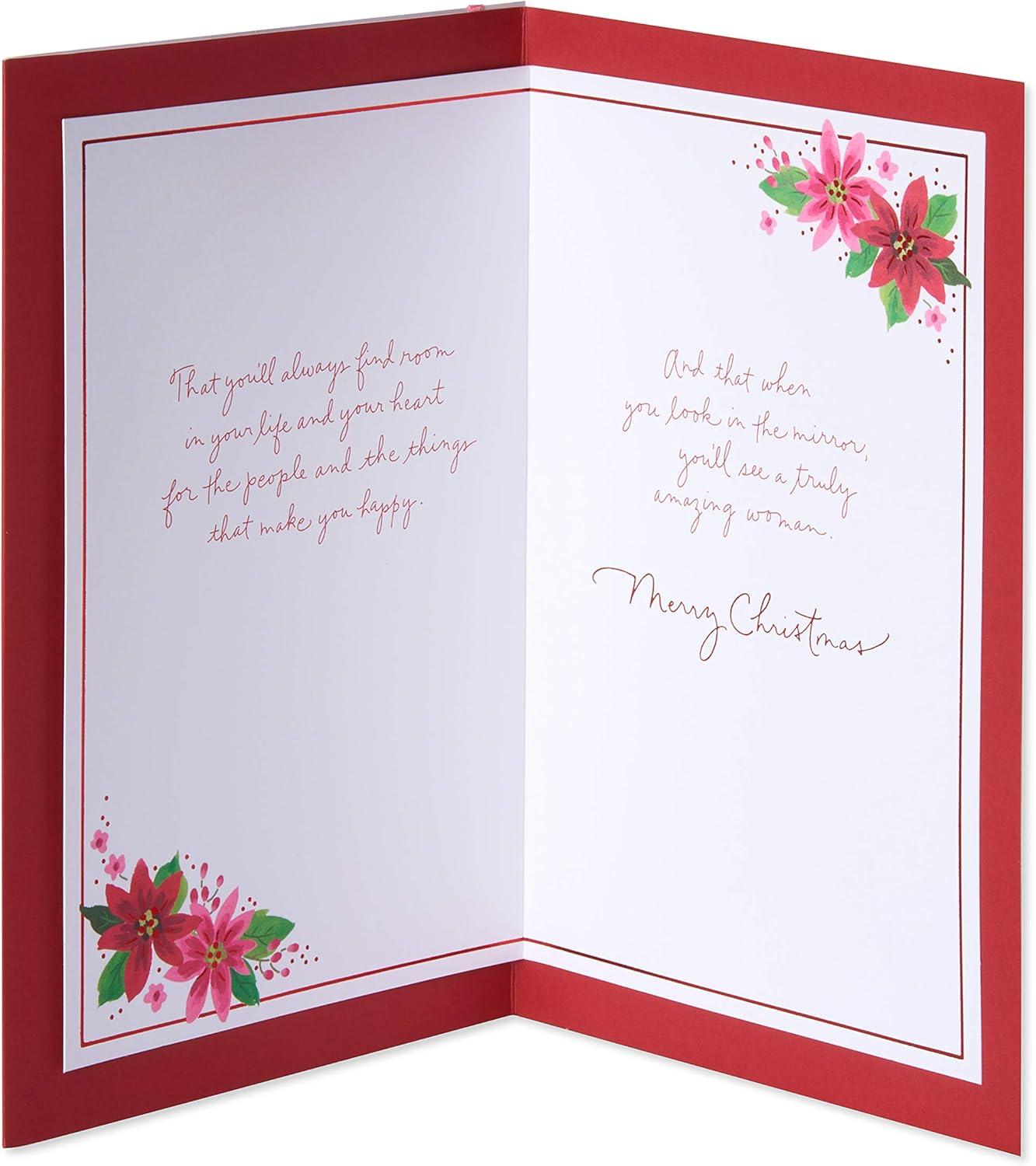 American Greetings Christmas Card for Daughter, Festive Florals Holiday Greeting with Poinsettias and Ribbon for Her (Truly Amazing Woman)(Truly Amazing Woman)