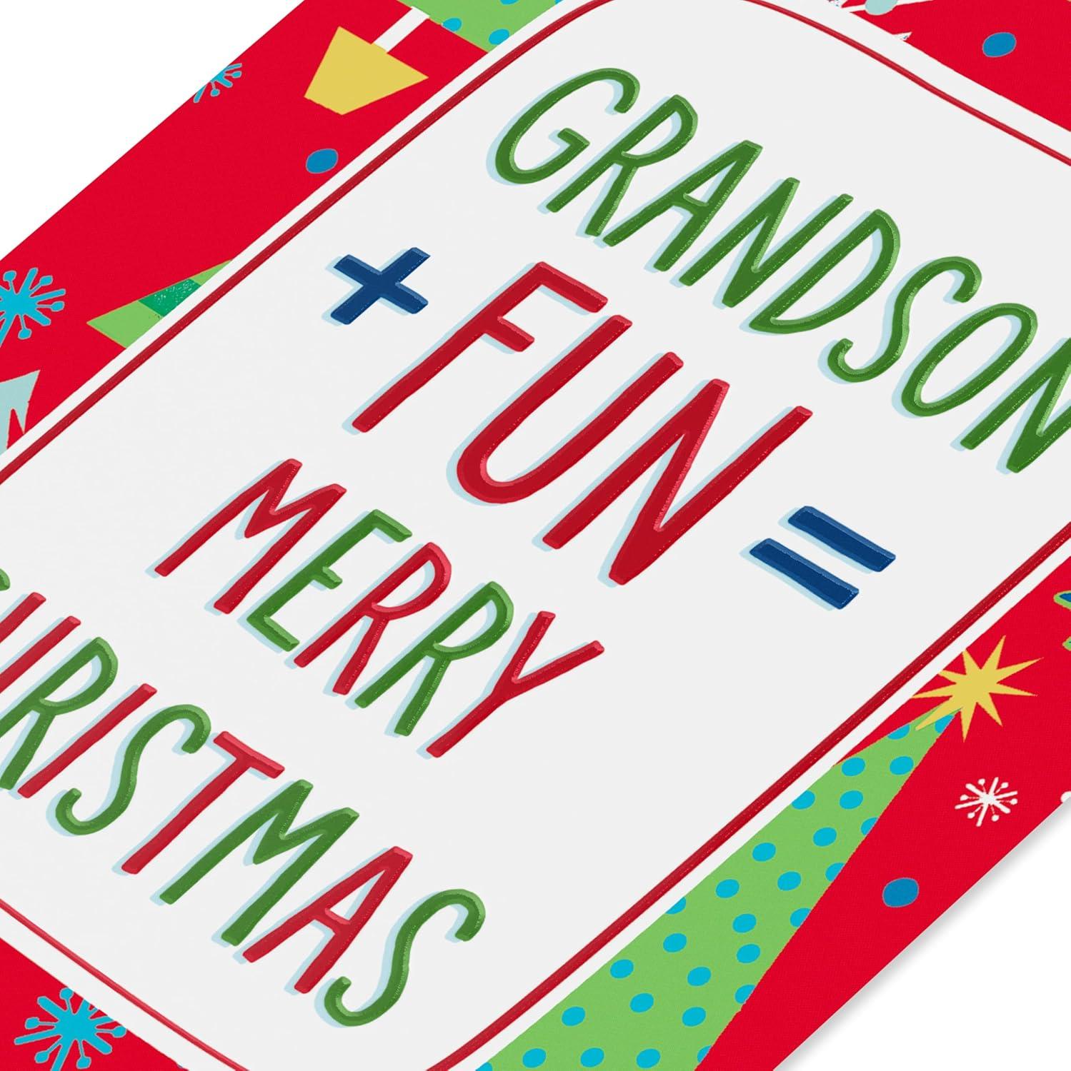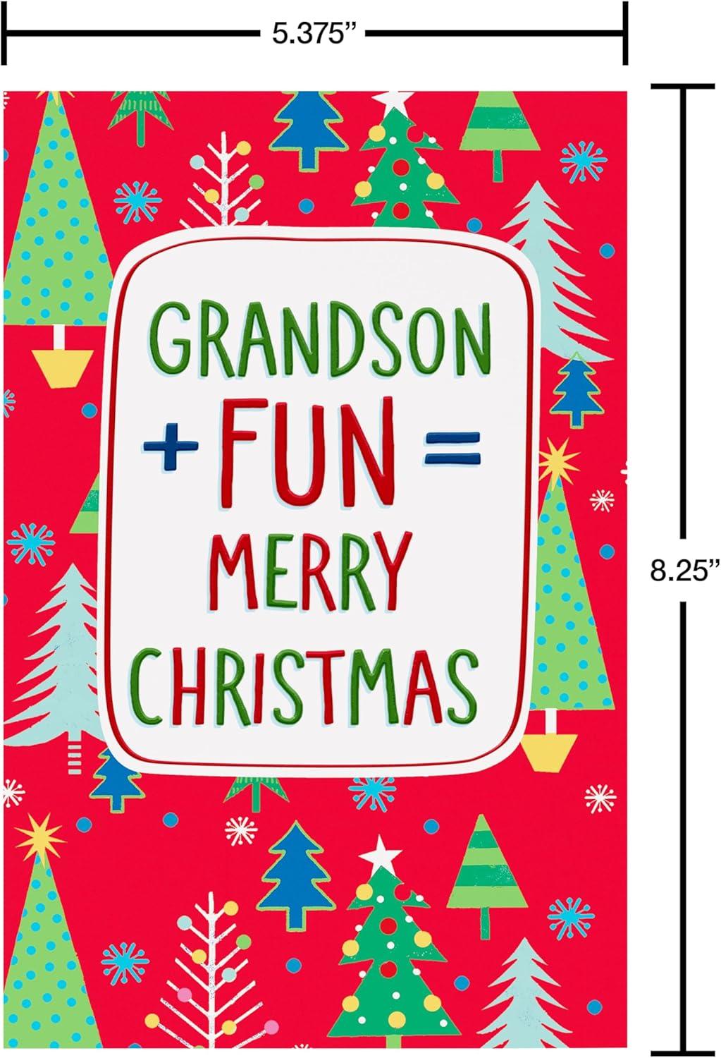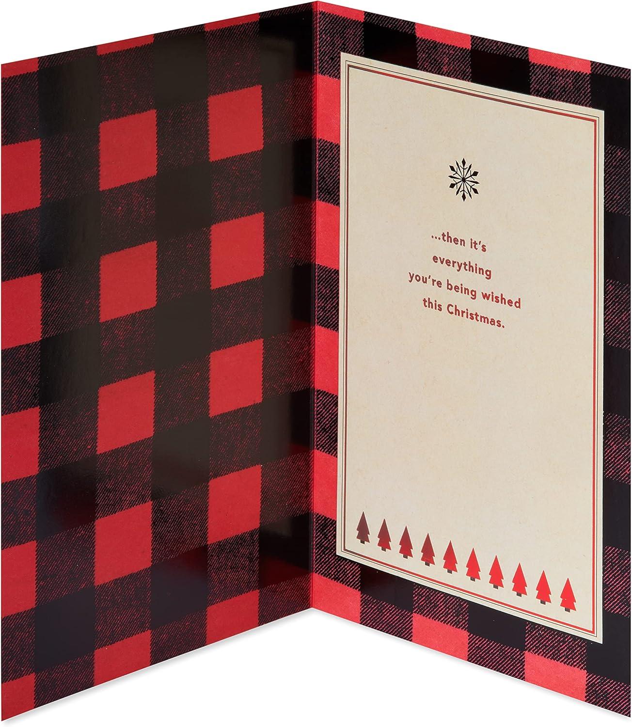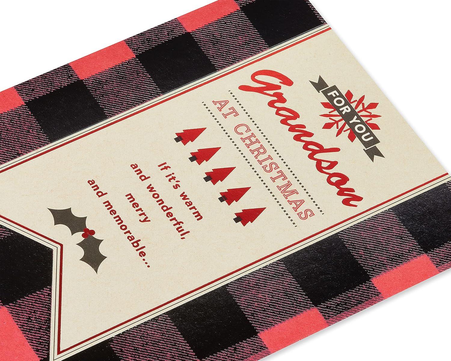 American Greetings Christmas Card for Grandson, Red and Black Buffalo Plaid Holiday Greeting for Grandchild (Merry and Memorable)(Merry and Memorable)