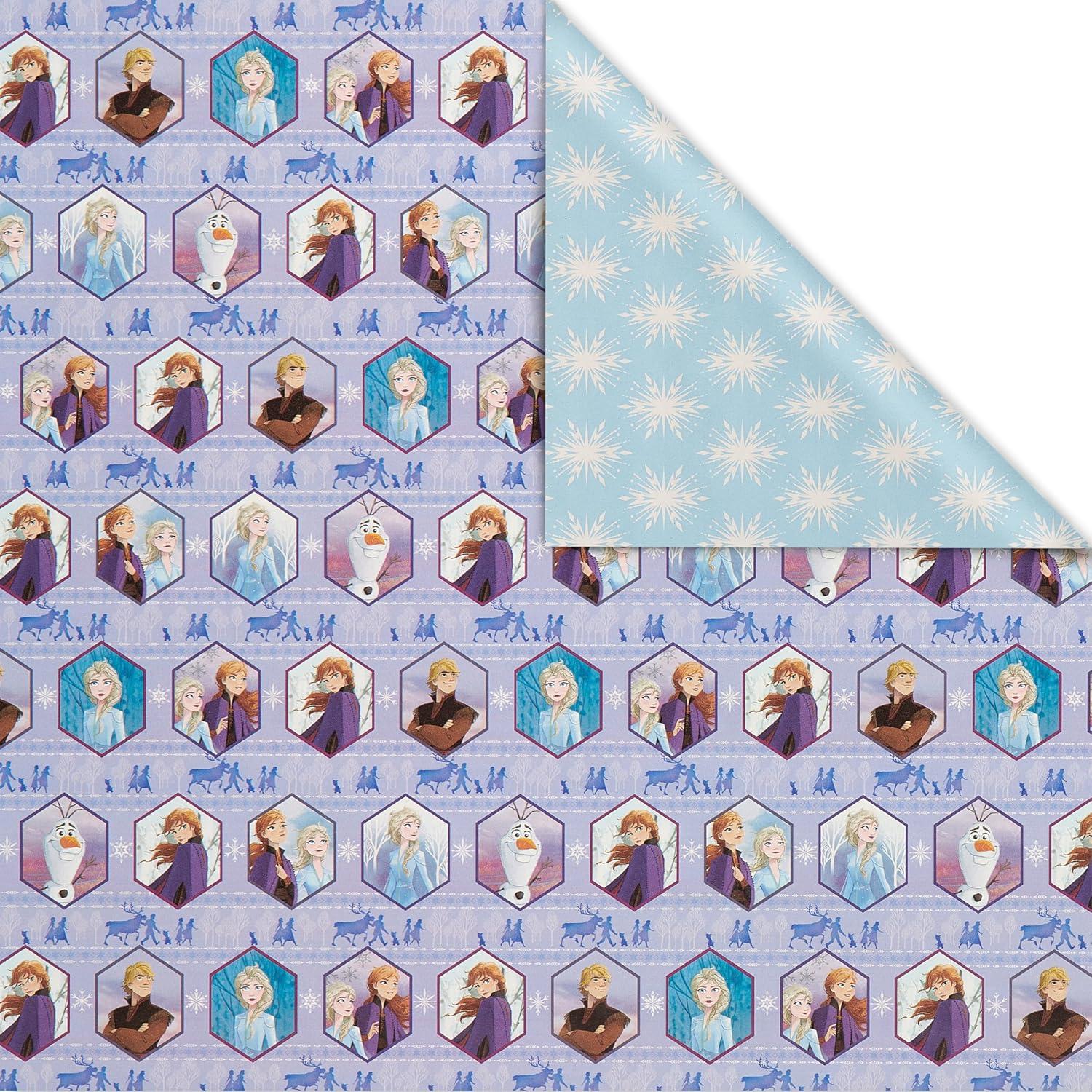 American Greetings Reversible All-Occasion and Birthday Wrapping Paper, Disney Frozen (1 Pack, 75 sq. ft.)