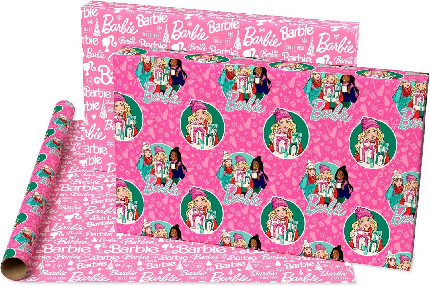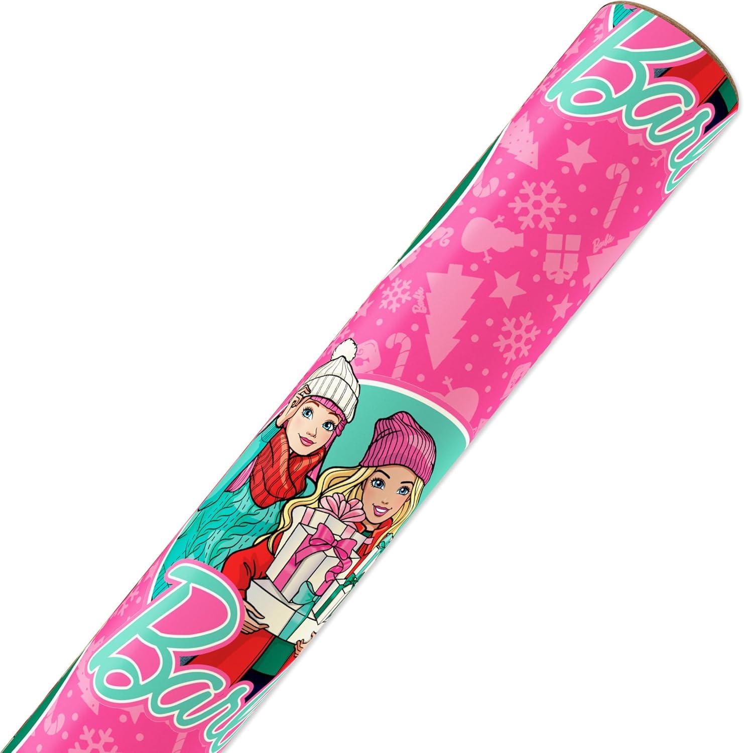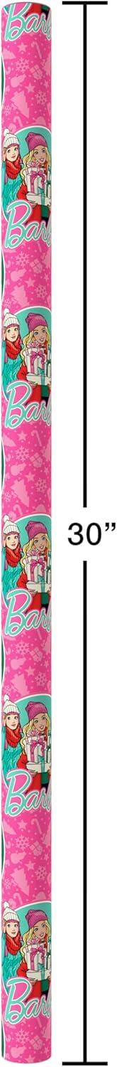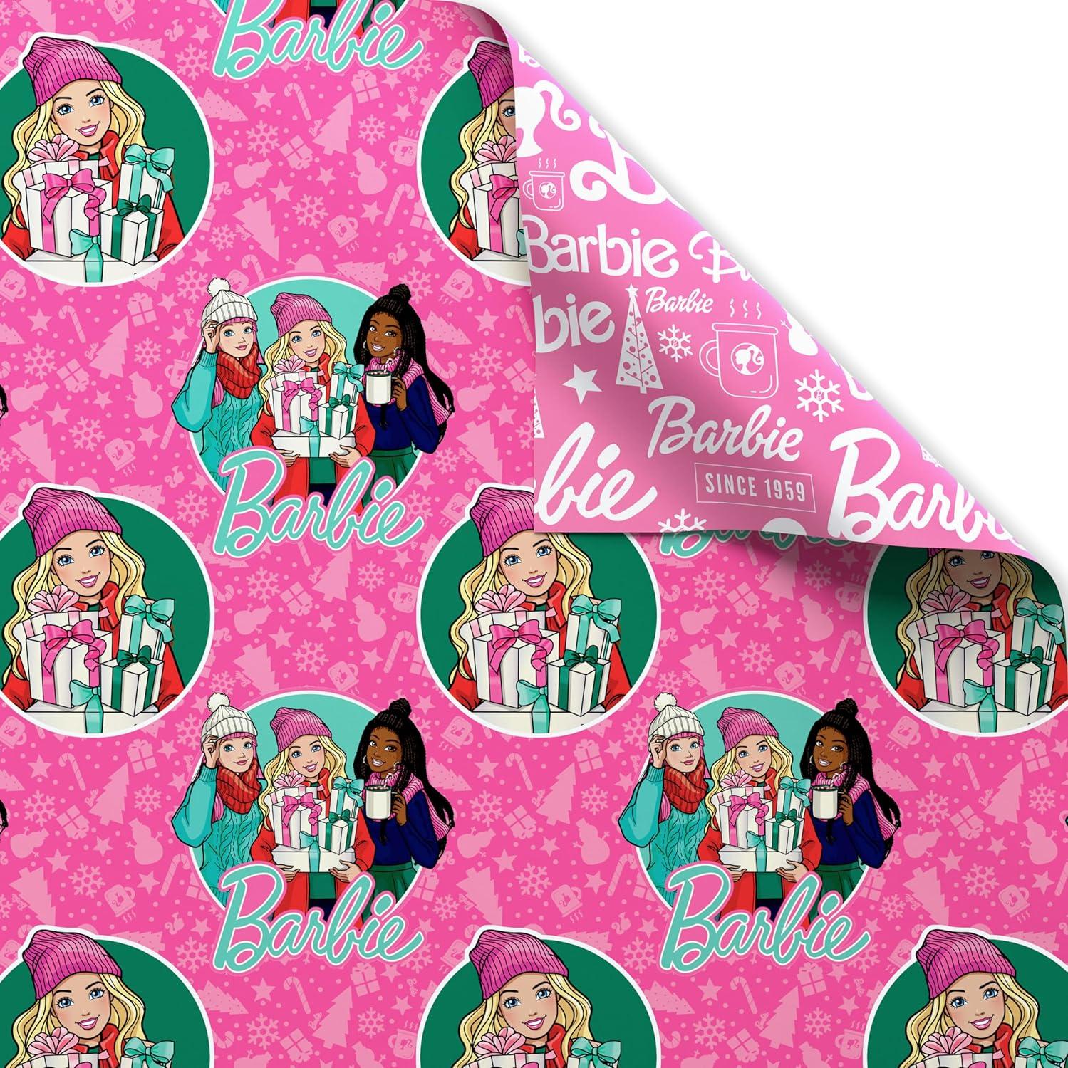 American Greetings Pink Christmas Wrapping Paper Roll for Kids, Barbie and Friends Holiday Gift Wrap (1 Reversible Roll, 75 sq. ft.) Barbie, Daisy, Brooklyn(SR 30 75SQ PR FSC XM BARBIE)