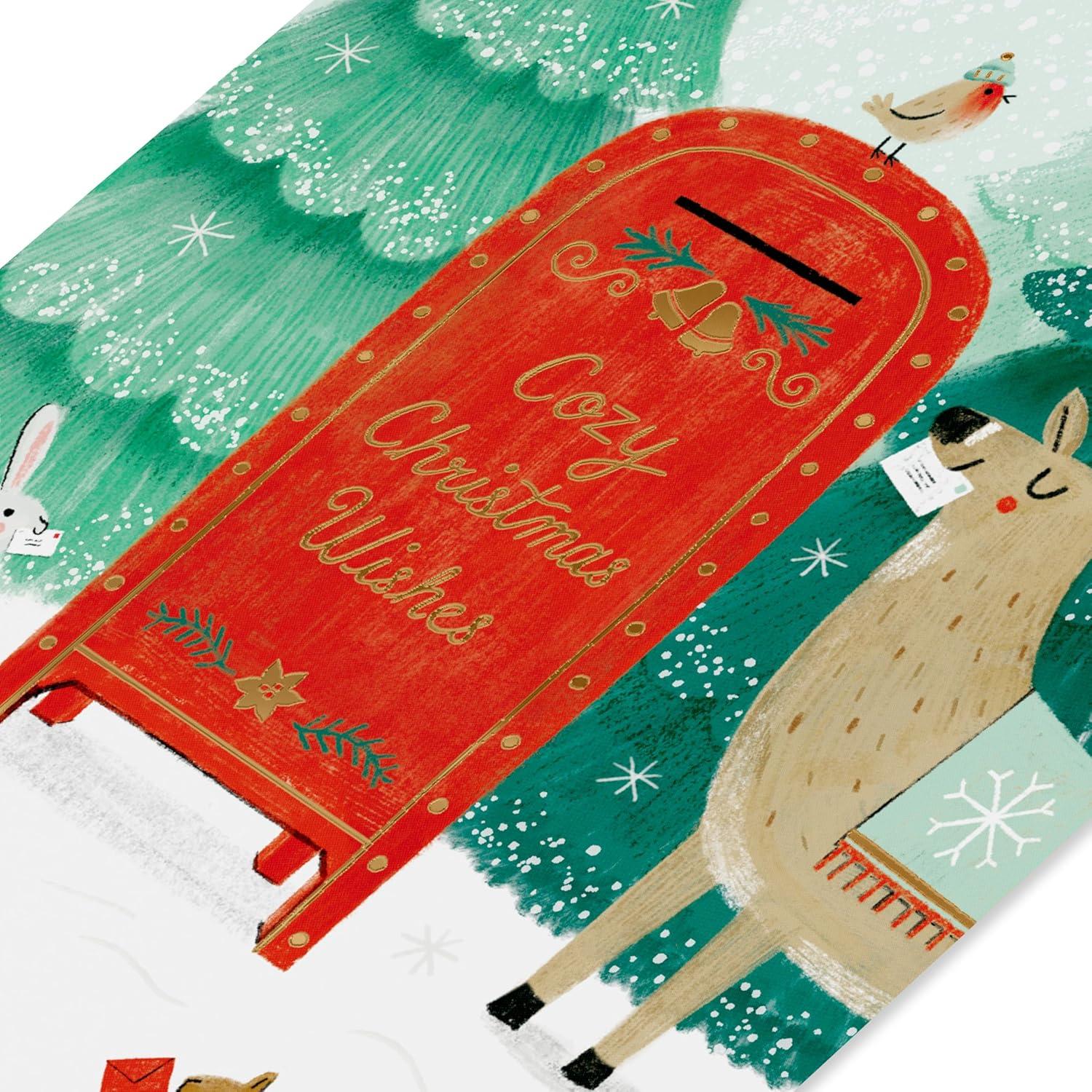 American Greetings Christmas Thinking of You Card for Long Distance Friends or Family (In My Thoughts)(Woodland Animals w Letterbox)