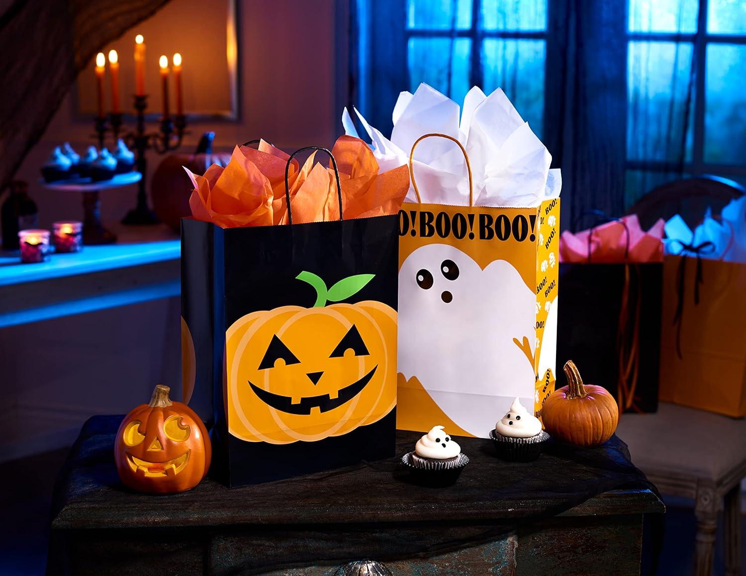 American Greetings 10″ Small Halloween Goodie Bags, Pumpkins and Halloween Text (16-Count)(Ghost and Pumpkin)