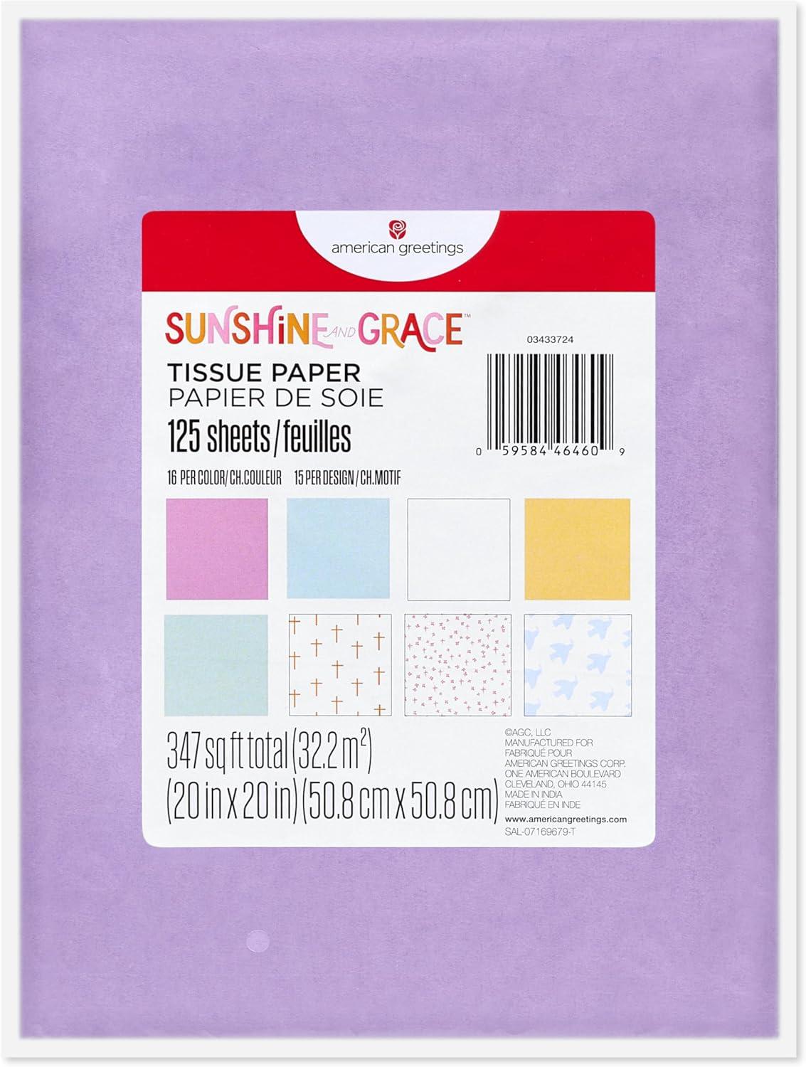 American Greetings 160 sq. ft. Reversible Religious Wrapping Paper Bundle for Weddings, First Communions and Baptisms – Designed by Kathy Davis, White Doves, Floral, Religious Lettering (4 Rolls, 30 in. x 16 ft.)(Multicolored Pastel Tissue Paper with Crosses)