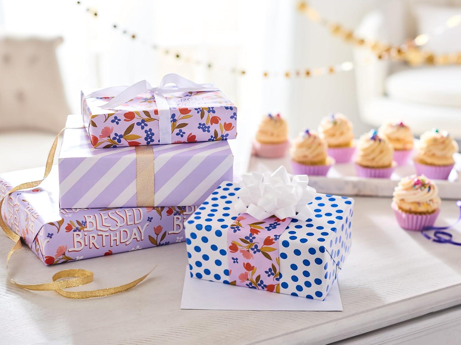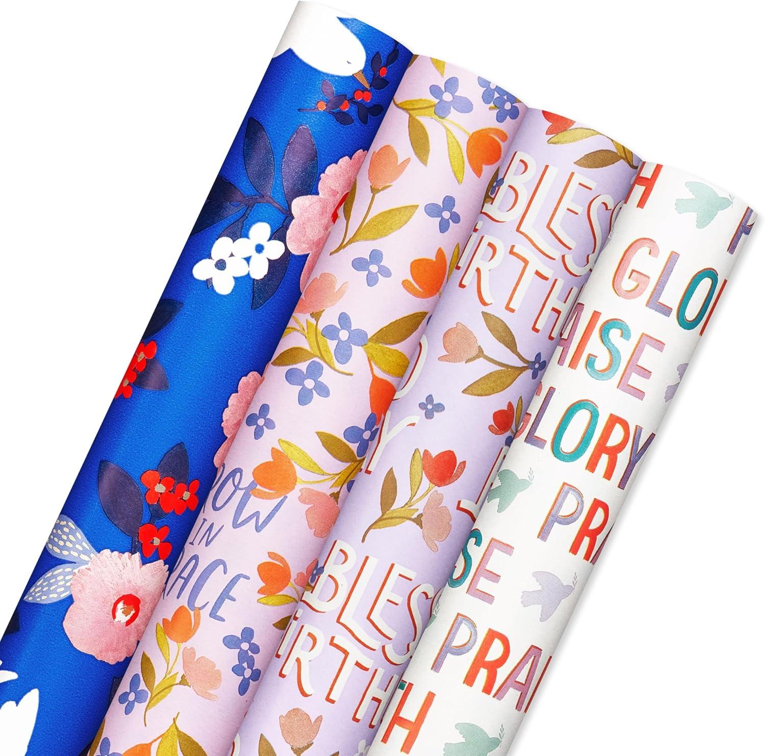Your gift presentations will be a special blessing when you use this eco-friendly Religious Gift Wrap Bundle by Kathy Davis! This eco-friendly 4-Roll Bundle features Reversible Gift Wrap in a bright assortment of Religious designs, including white doves, flowers, the brightly lettered words “Blessed Birthday” on one design, “Glory, Praise, Faith” on another, as well as colorful stripes and joyful polka dots. This Religious Gift Wrap Bundle by Kathy Davis contains enough wrapping paper to wrap 36 shirt boxes. It's the perfect option for birthdays, christenings, First Communions, weddings, confirmations, baptisms, Easter, other religious occasions, and more! All eco-friendly rolls are printed on heavyweight, durable FSC Paper, which is made of responsibly sourced wood fiber. Celebrate all the special people in your life with this Religious Gift Wrap Bundle by Kathy Davis!