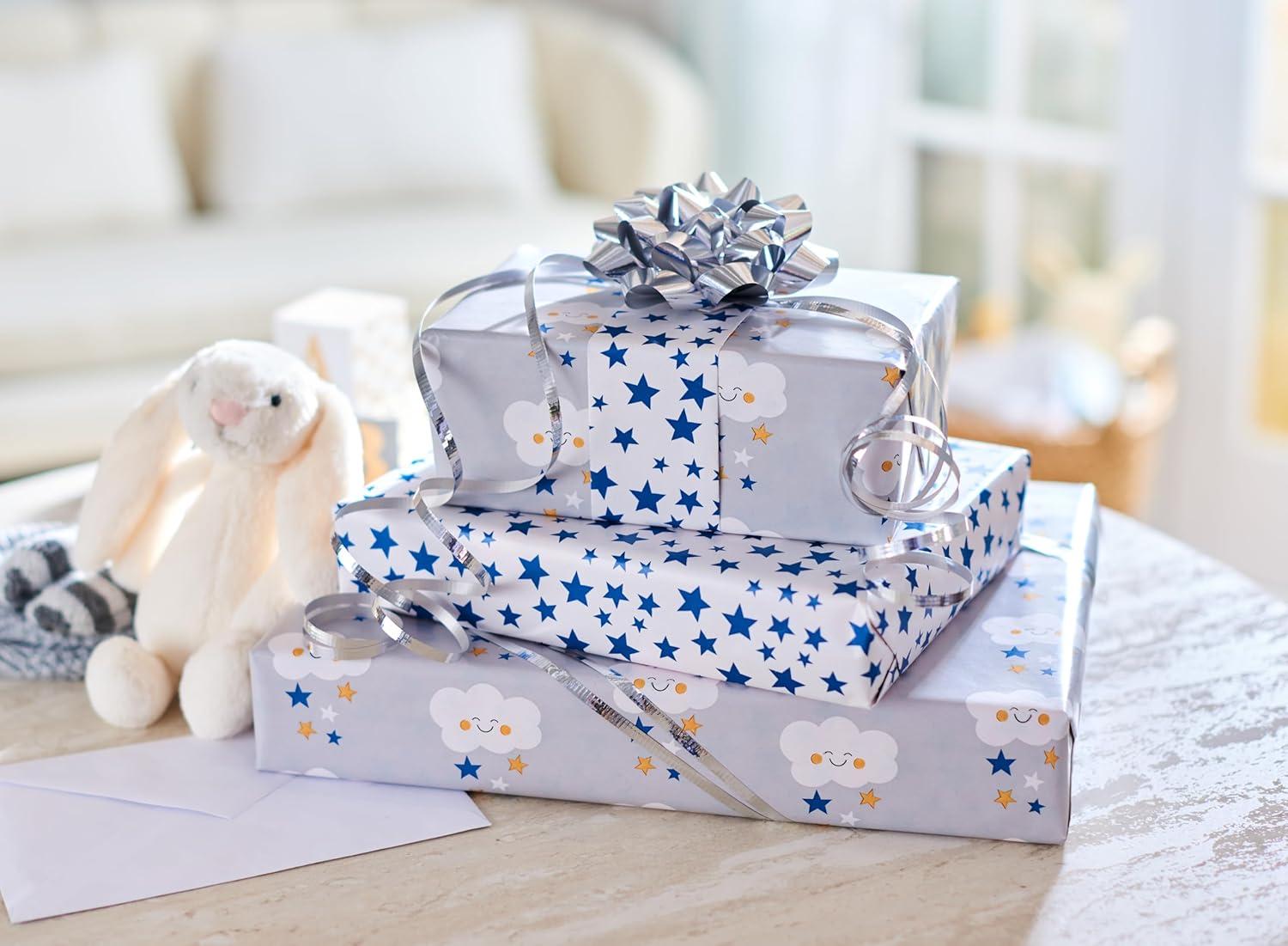 American Greetings 175 sq. ft. Reversible Wrapping Paper for Baby Showers, Kid’s Birthdays and All Occasions, Moon and Stars (1 Roll, 30 in x 70 ft.)(Clouds and Stars)