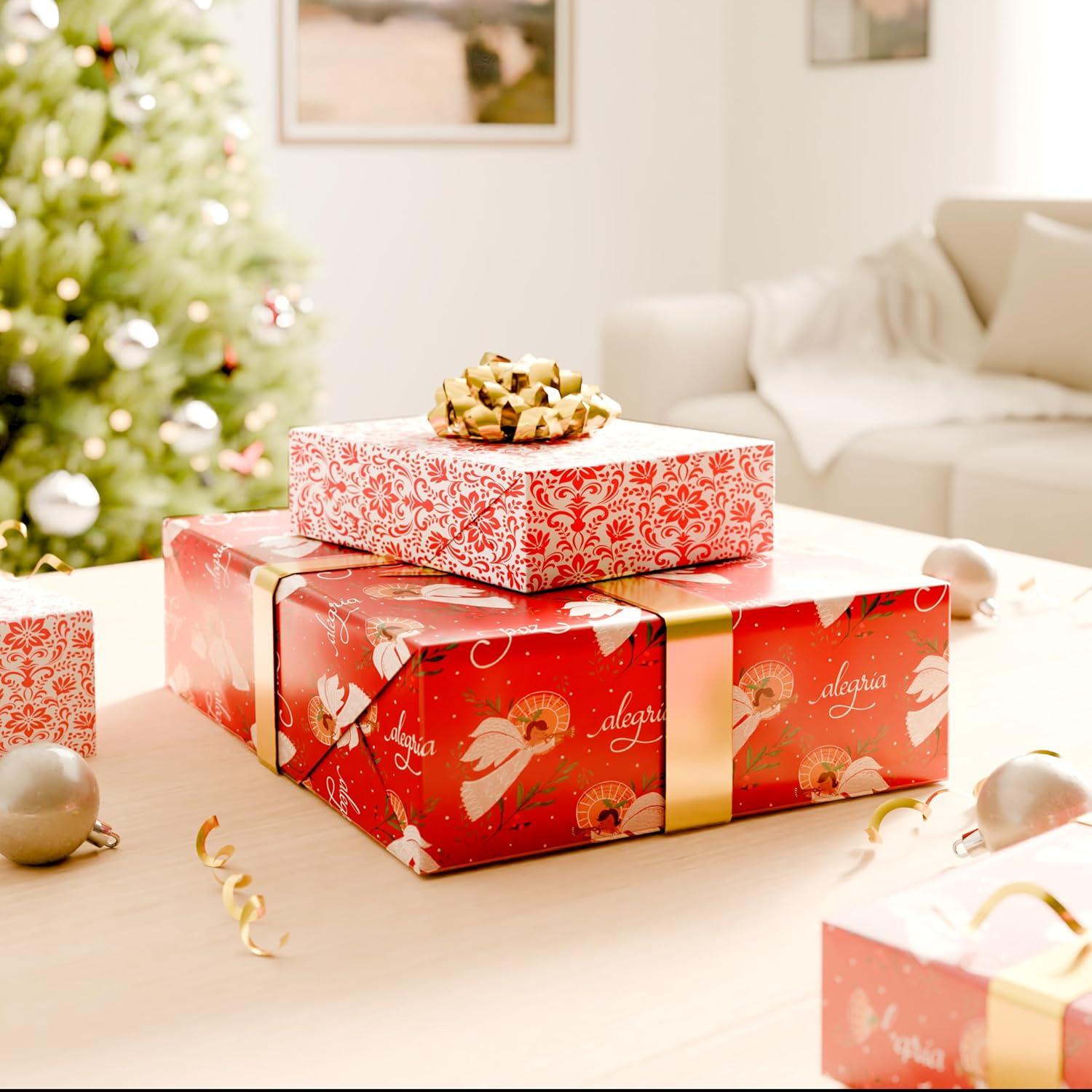 Wrap your gifts in the essence of joy and cultural beauty with our Alegria Paz Christmas Wrapping Paper. This reversible wrapping paper roll features enchanting La Rosa designs with elements of Hispanic heritage, highlighted by angels and vibrant florals in red, white, and green contrasts. Perfect for a festive and meaningful presentation of your holiday gifts. Whether you're wrapping small treasures or larger presents, this high-quality paper ensures your gifts are as delightful on the outside as they are on the inside. Celebrate this season's greetings with grace, style, and a touch of cultural flair.