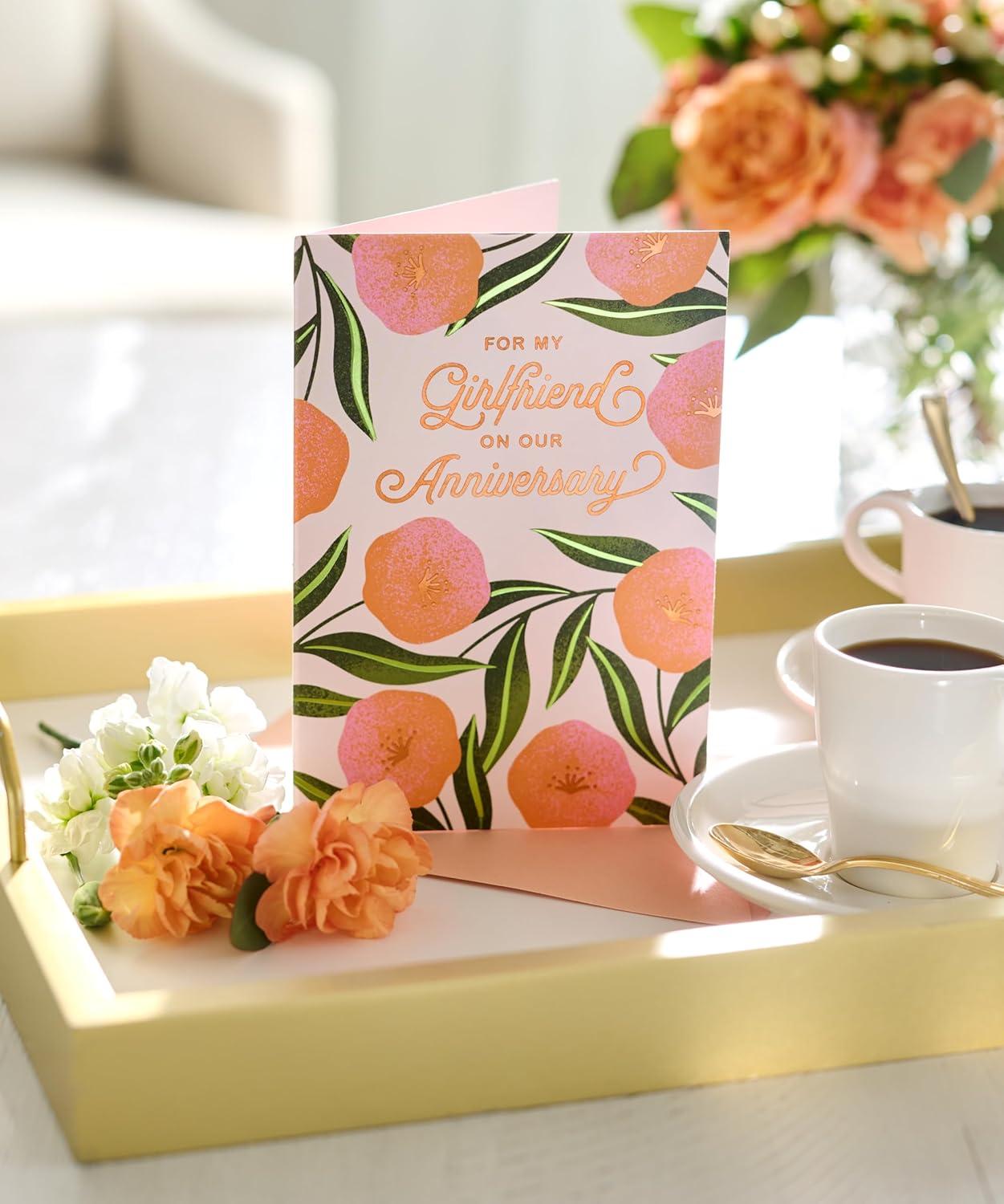 Celebrate your love on a special day with this beautifully designed anniversary card by American Greetings. Featuring elegant orange florals and shimmering foil accents, this card elegantly expresses your deepest affections and shared memories with your girlfriend. It’s an ideal choice for anyone wishing to make their anniversary truly memorable. Includes a thoughtful message inside that perfectly encapsulates your bond and a complementary envelope. American Greetings offers exceptional greeting cards, gift wrap and celebration products so you can connect in ways that fit your personality and authentic style.