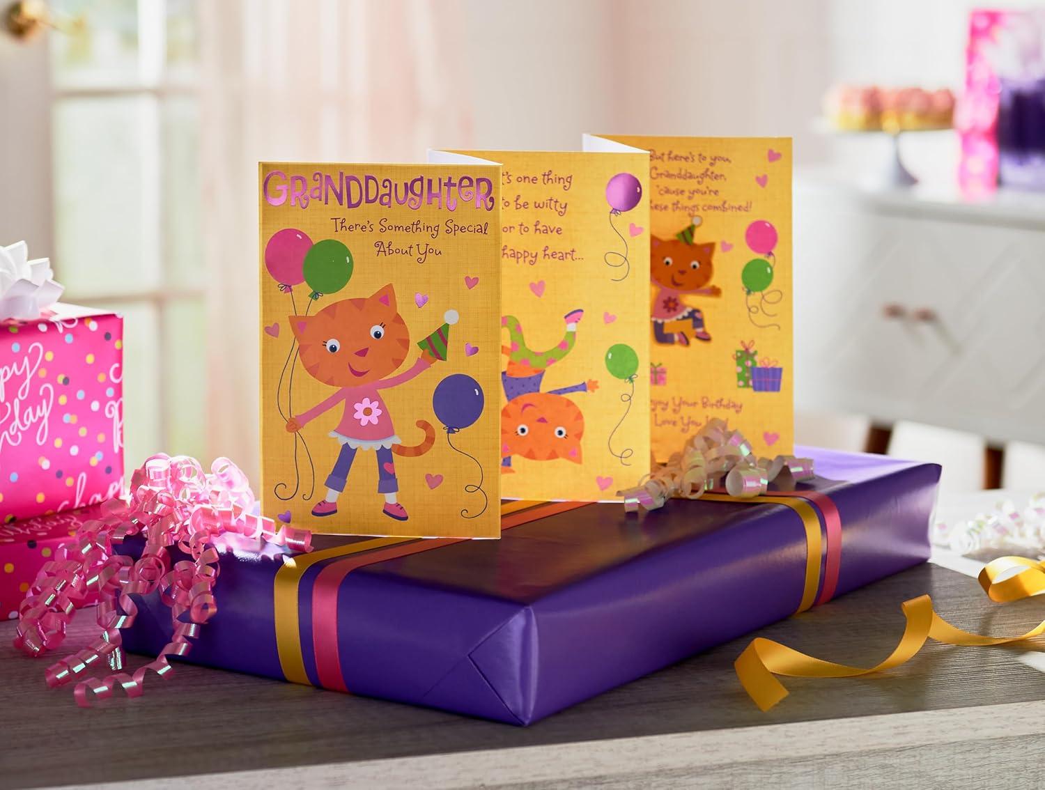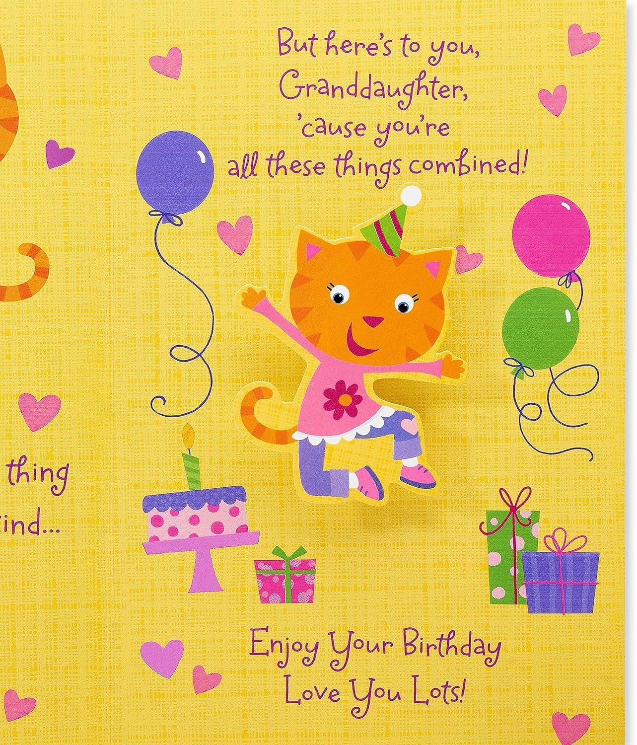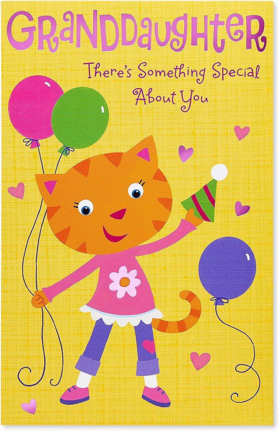American Greetings Birthday Card for Granddaughter with Stickers (Pinch of Sugar)(Cartoon Cat w Balloons)