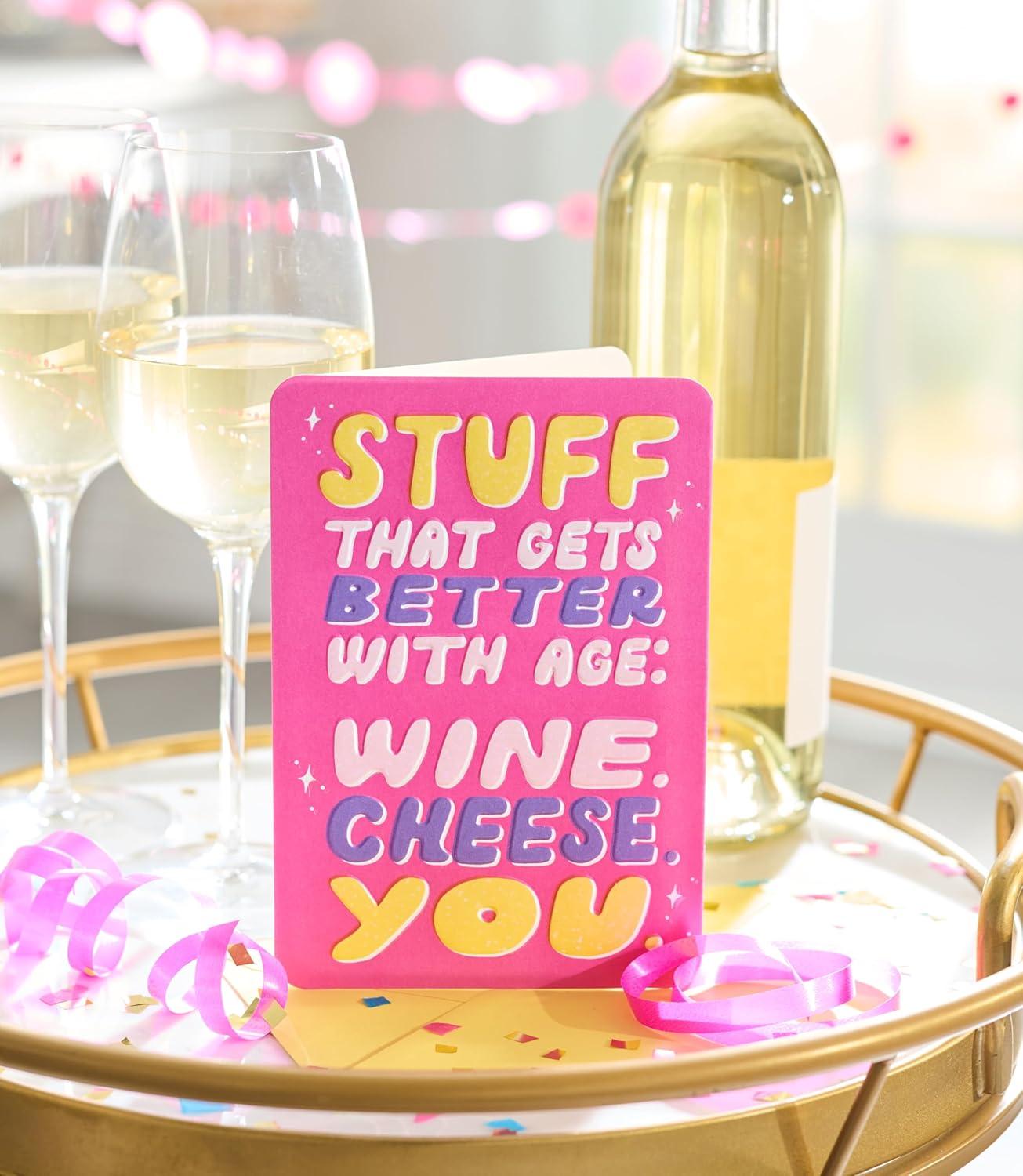 Give her something she’ll always remember with this super fun birthday card from American Greetings. It’s definitely going to put a smile on her face. It features a bright yellow background with stars and fun illustrations of cosmetic products as well as raised detailing. The message is funny and unexpected and there is plenty of room inside to add your own personal touch. Send it to your mom, aunt, sister, bestie, or co-worker. It’s the kind of card any woman will love. Envelope is included.