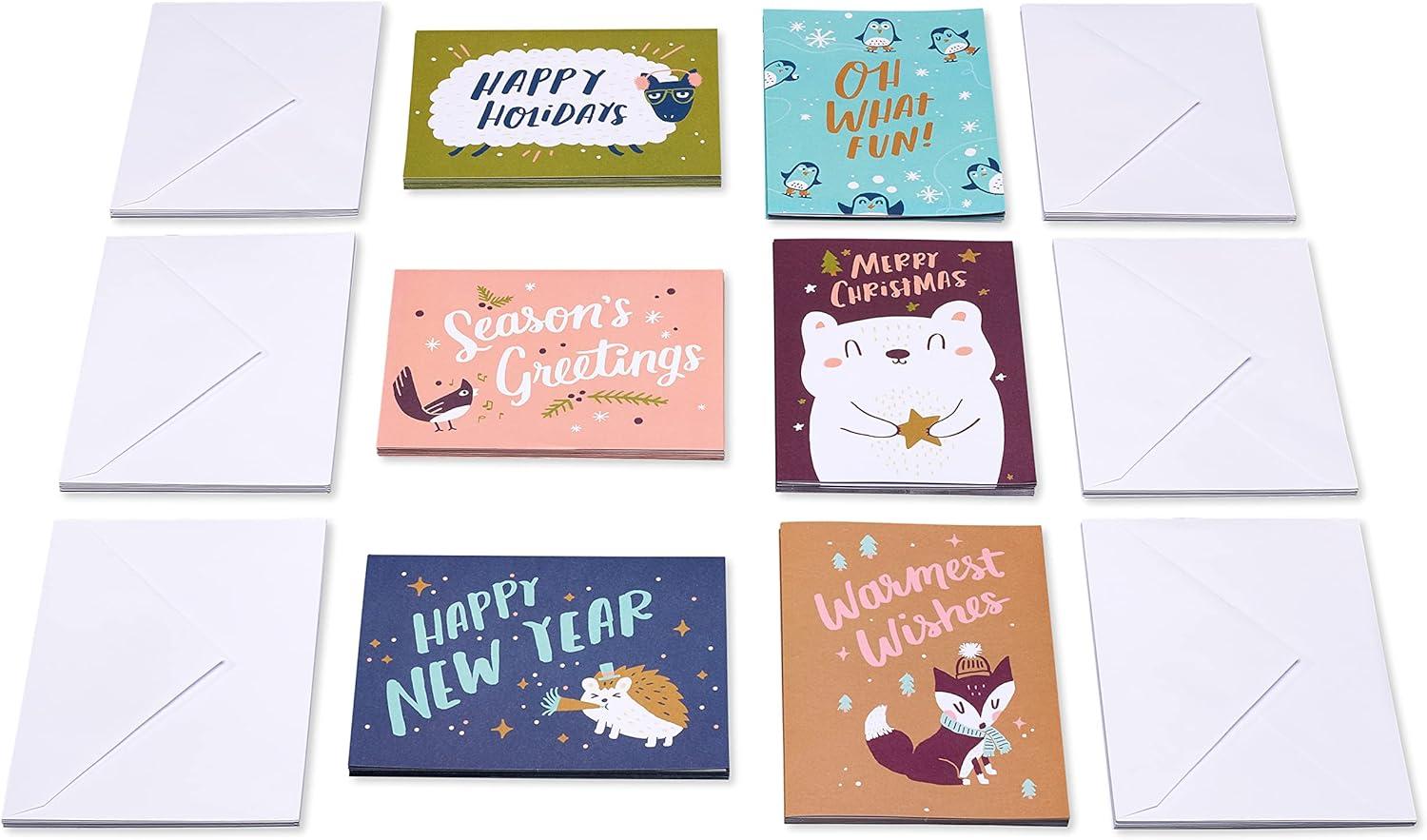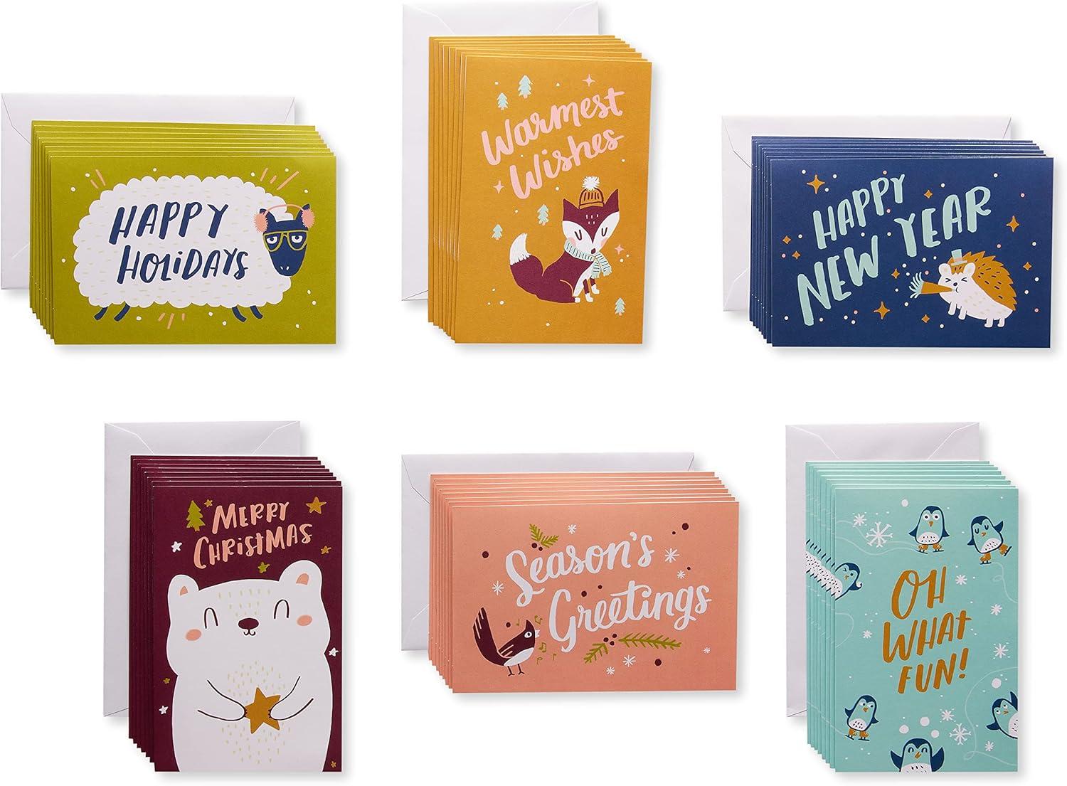 American Greetings Blank Holiday Cards with Envelopes, Winter Nature (48-Count)(New Years and More Cute Animals)