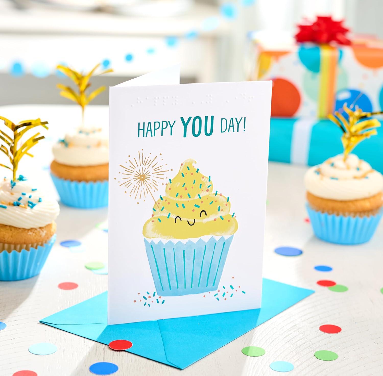Explore the joy of giving with this unique Braille birthday card, specially designed for the visually impaired. A cheerful cupcake topped with gold foil and Braille that spells out 'Happy YOU Day!' celebrates someone genuinely amazing. It's an ideal choice for birthdays, making a sweet and thoughtful impact. Find more gifts that delight, educate, and celebrate inclusivity from American Greetings. American Greetings offers exceptional greeting cards, gift wrap and celebration products so you can connect in ways that fit your personality and authentic style.