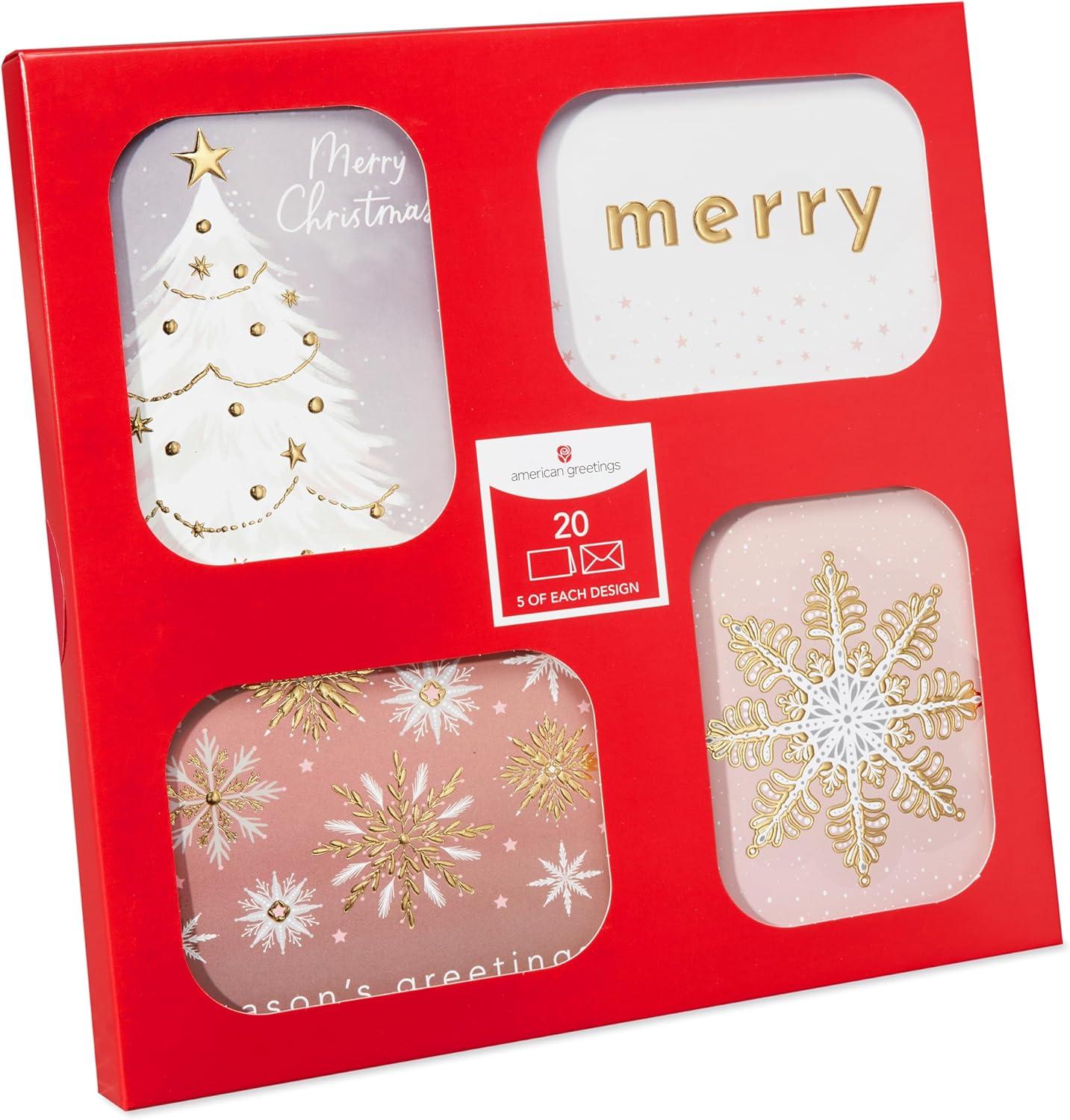 American Greetings Christmas and Holiday Cards Boxed with Envelopes, Metallic Medley (20-Count)(PINK GOLD SILVER PINWHEEL 20CT)