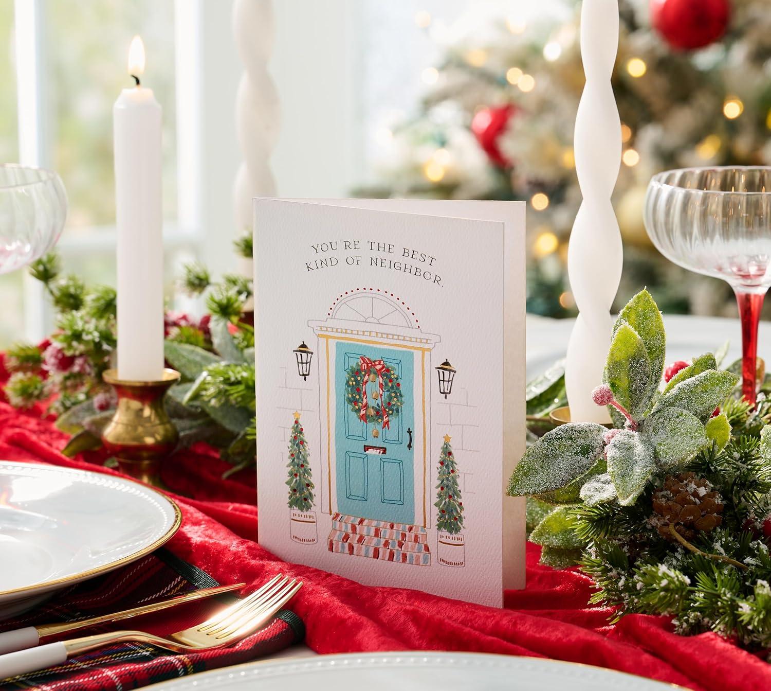Show appreciation to those next door with this heartwarming Christmas card. The front illustration features a beautifully decorated front door, symbolic of the warmth and love you share with your neighborhood friend during the holidays. This Christmas card for your neighbor captures the spirit of the season and offers festive wishes for a Happy New Year. It's the perfect way to express gratitude for the friendly smiles and helpful hands throughout the year. American Greetings offers exceptional greeting cards, gift wrap and celebration products so you can connect in ways that fit your personality and authentic style.