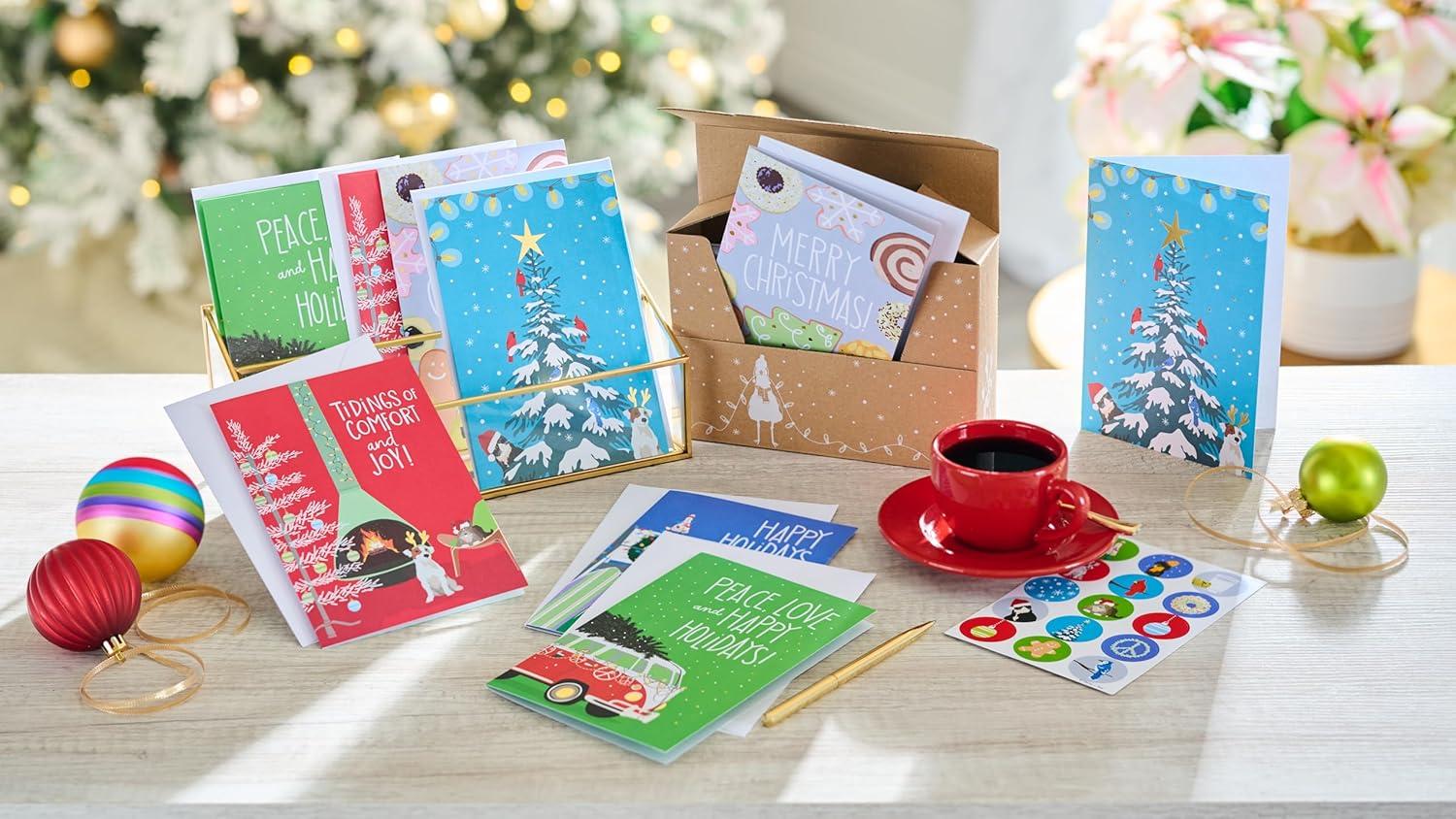 This American Greetings card bundle includes an assortment of holiday cards with shimmering foils and special messages inside each
