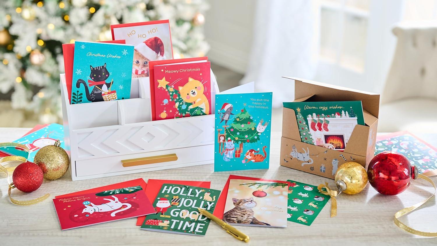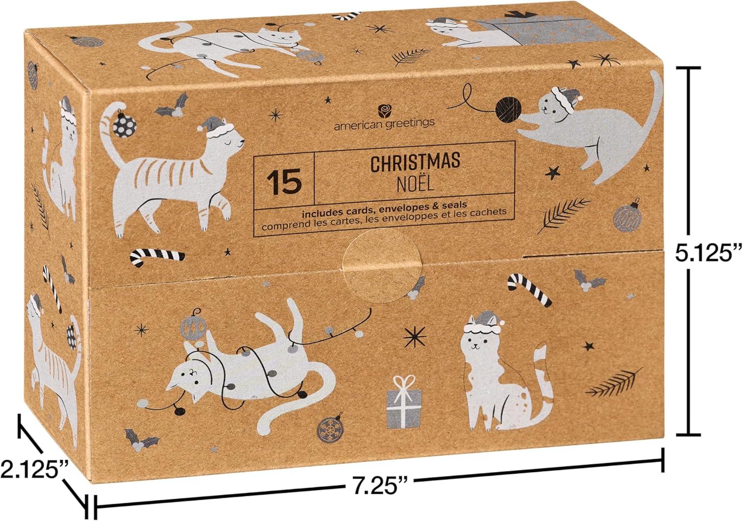 American Greetings Christmas Cards with Envelopes, Trendy Pink Pastel Designs (25-Count)(XMAS CAT CB 15CT)