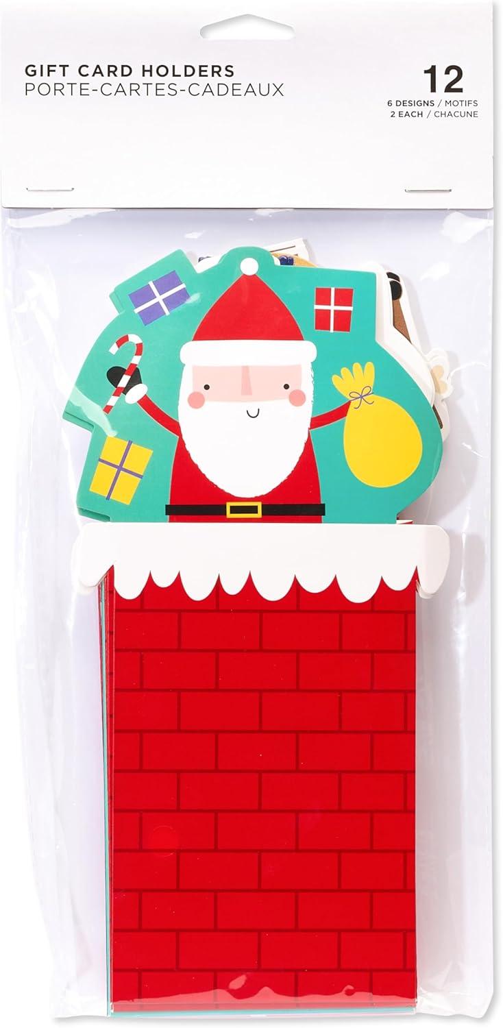 American Greetings Christmas Gift Card Holders, Gingerbread Man, Santa, and Presents (12-Count)(GCH XMAS SLIDE 12CT)