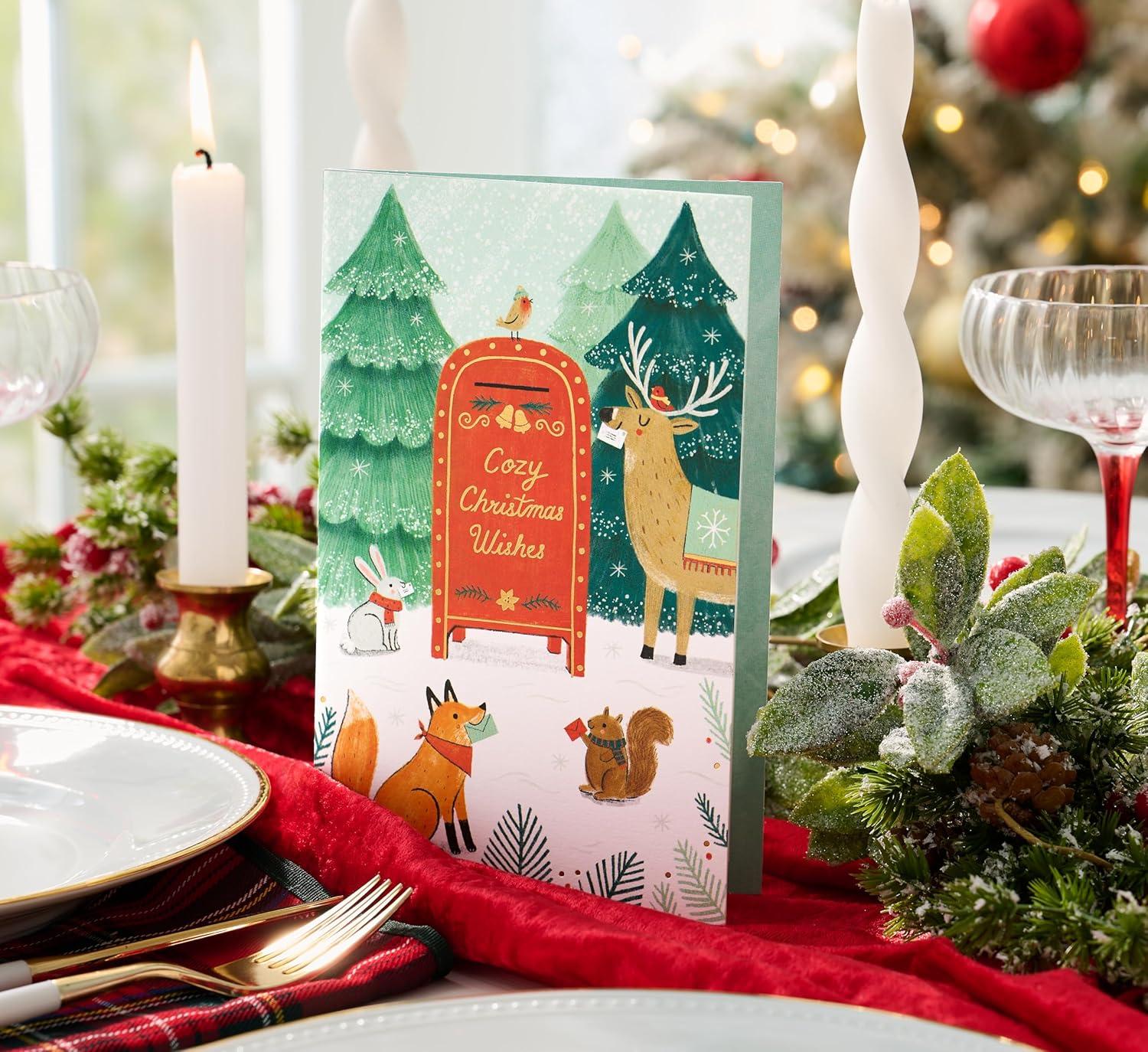 American Greetings Christmas Thinking of You Card for Long Distance Friends or Family (In My Thoughts)(Woodland Animals w Letterbox)