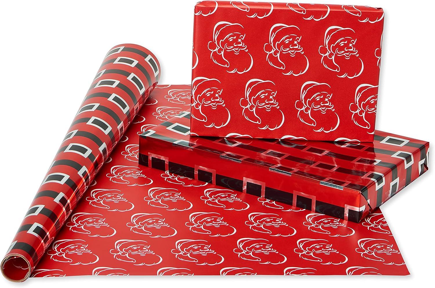 American Greetings Cute Reversible Christmas Wrapping Paper Rolls, White and Red Holiday Gift Wrap (120 sq. ft., 4 Rolls-30 in. x 12 ft.) Plaid, Candy Canes, Trees, Snowmen(Red Black and Silver)