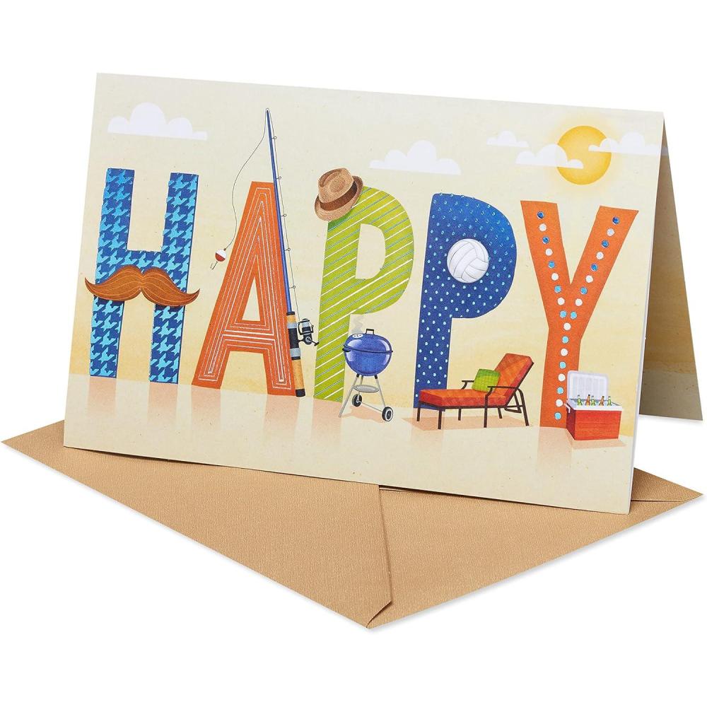 Say Happy Father’s Day with a uniquely designed greeting card! This fold-out design features colorful lettering, shiny blue and silver foil accents, and fun dad-themed imagery to make him smile. It’s the perfect way to brighten his Father’s Day! American Greetings offers exceptional greeting cards, gift wrap and celebration products so you can connect in ways that fit your personality and authentic style.