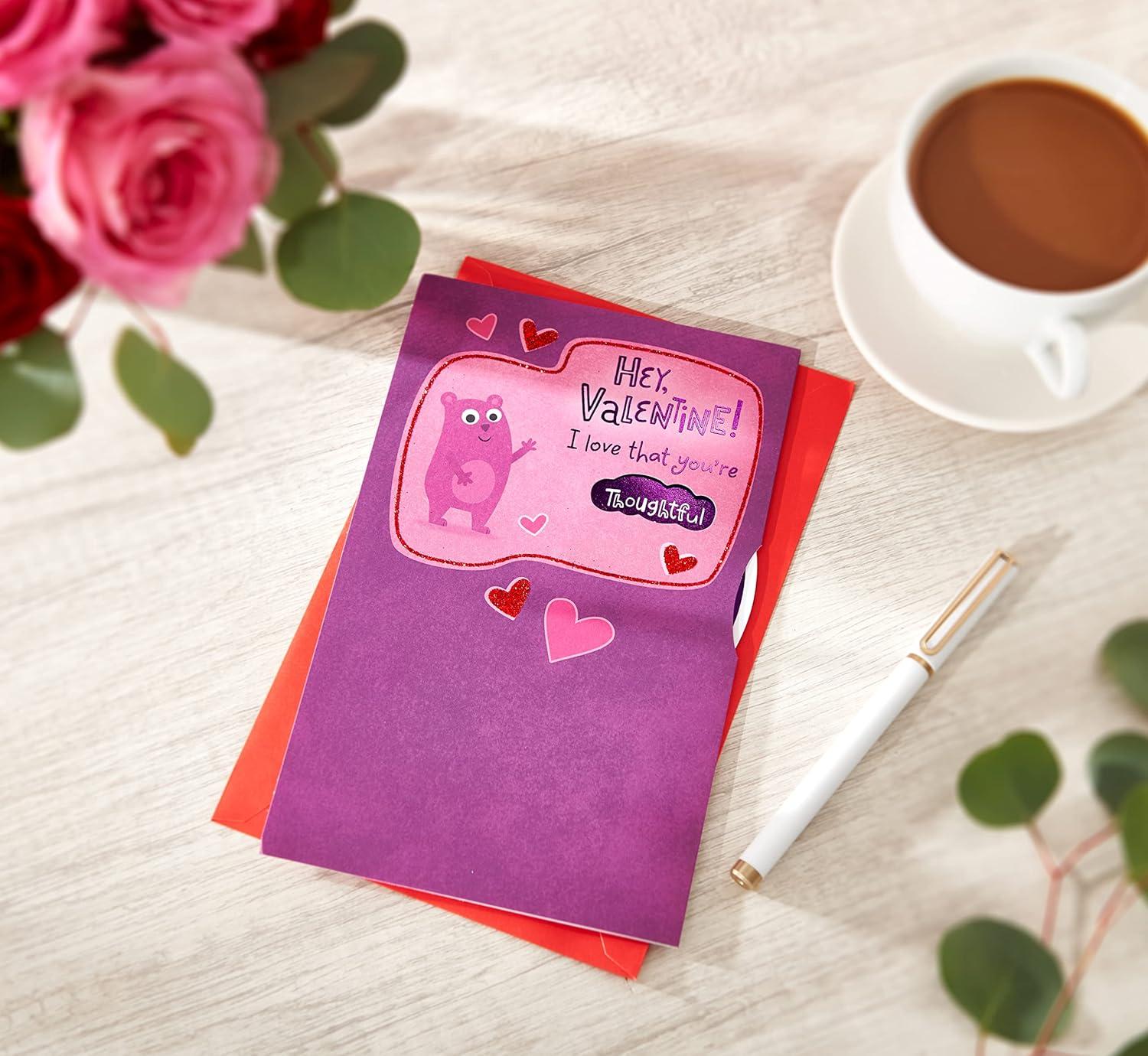 American Greetings Valentine's Day card measures 5.375 in. x 8.25 in. Red envelope is included and standard postage is required.