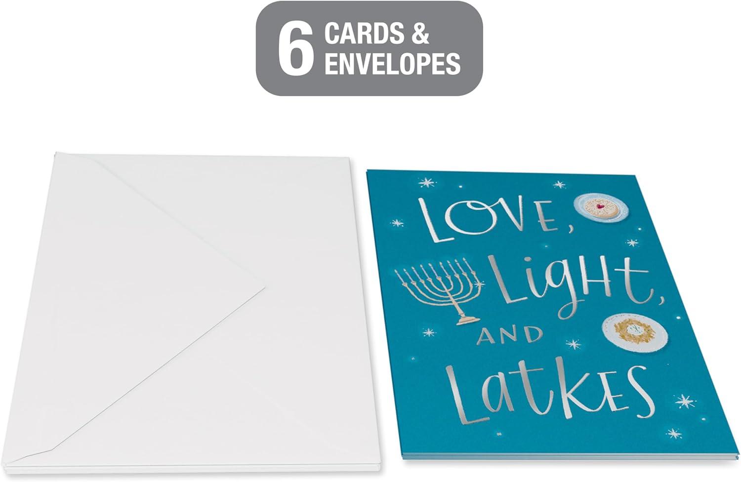 American Greetings Gift Card Holder Hanukkah Cards, Dreidels (6-Count)(Lettering and Hanukkah Icons)