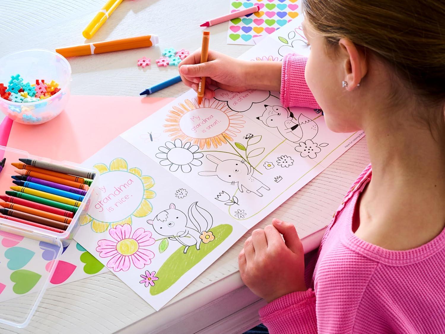 Bring a little color to Grandma’s Mother’s Day with this fun greeting card. The fold-out card features fun woodland creatures with flowers outlined and waiting for a child to color it in and add his or her own creative touch. The message includes a sweet rhyme and sentiment. It’s a perfect way for a young grandchild to show their grandmother how much she means. Pink envelope included.