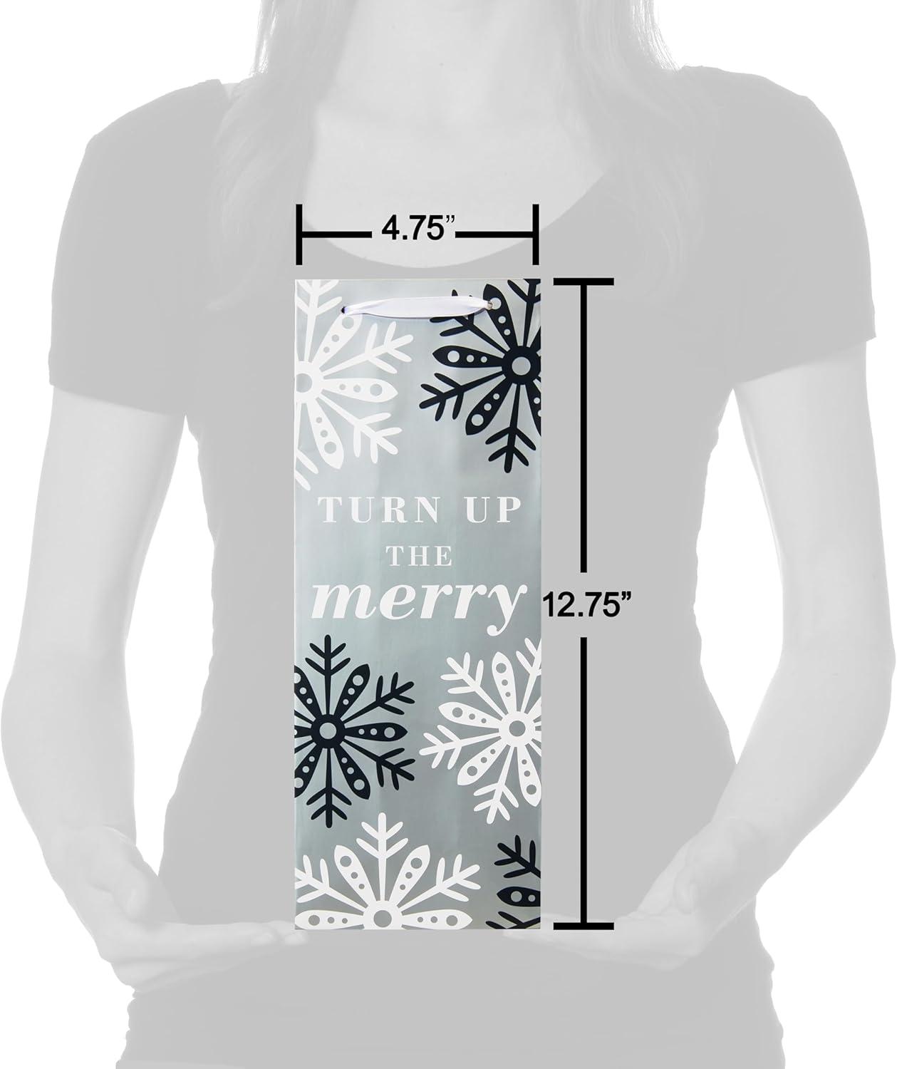 Bring on some holiday cheer with this seasonal beverage bag bundle! This bundle includes five bags, with designs featuring an iconic candy cane with red foil stripes; a beautiful gray bag with white snowflakes with no finishings; a stunning red bag with red and white stripes at the top with red foil; a festive red bag with no finishings that says “Merry Christmas” in a pattern; and a white bag with a fun red and gray polka dot pattern with no finishings. Each bag features a satin ribbon handle. Fill with your favorite beverage and top off with your tissue paper of choice (sold separately). With this bundle, you’re sure to make spirits bright!