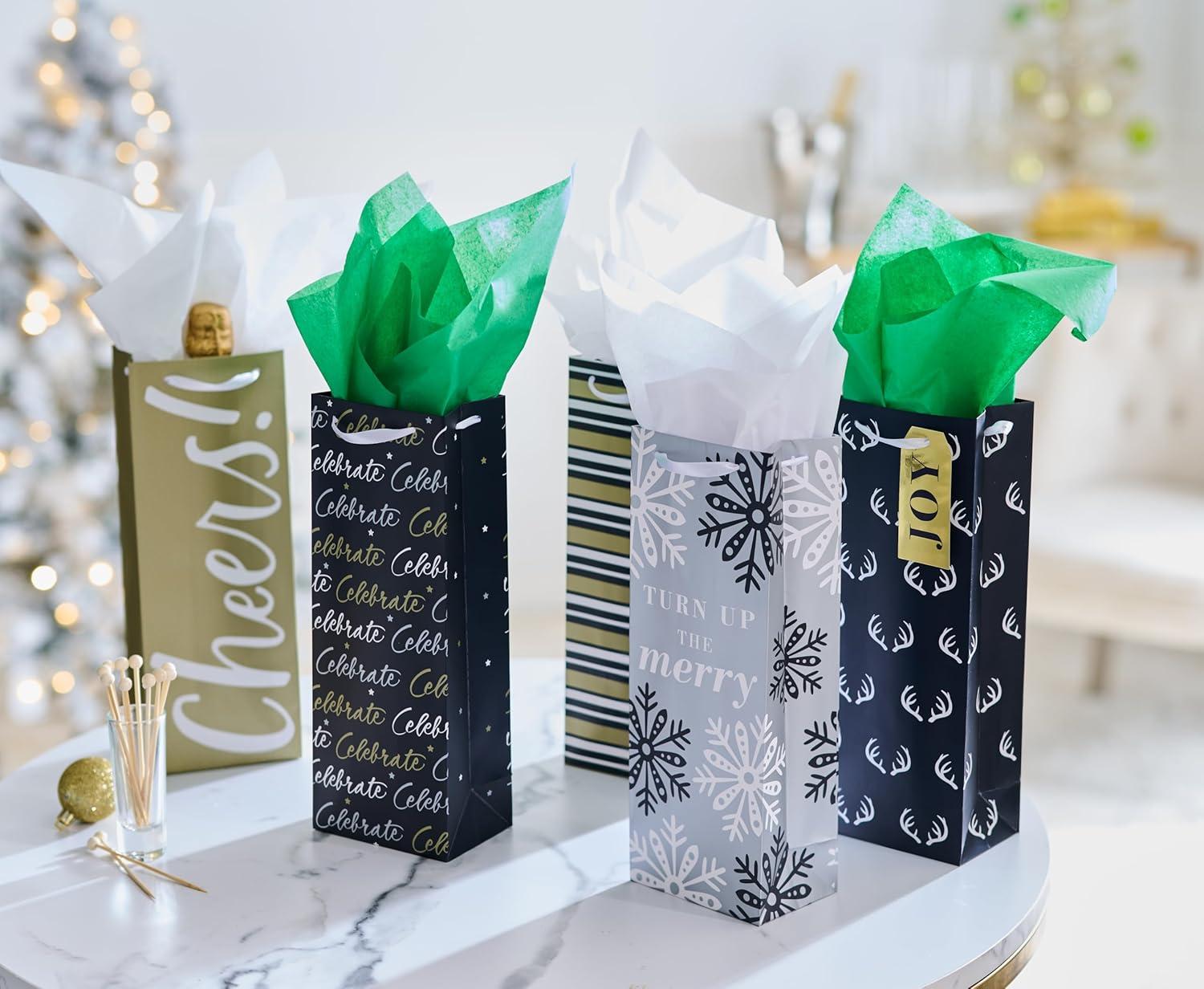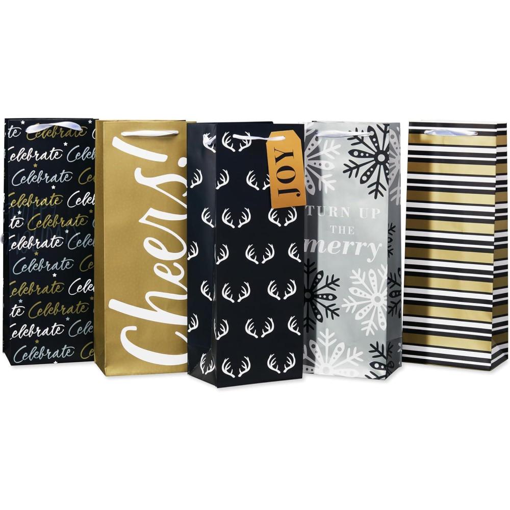 American Greetings Multi Design Wine Gift Bags, Red, White and Silver (5 Bags)(BEV SAP BAGBNDLE BLKGLDSLV 5CT)