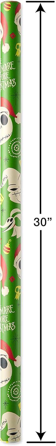 American Greetings Nightmare Before Christmas Christmas Wrapping Paper Rolls, Black and Red Holiday Gift Wrap (105 sq. ft., 3 Rolls-30 in. x 14 ft., Cut Lines) Jack Skellington, Oogie Boogie, Cosmo(Jack Skellington and Zero)