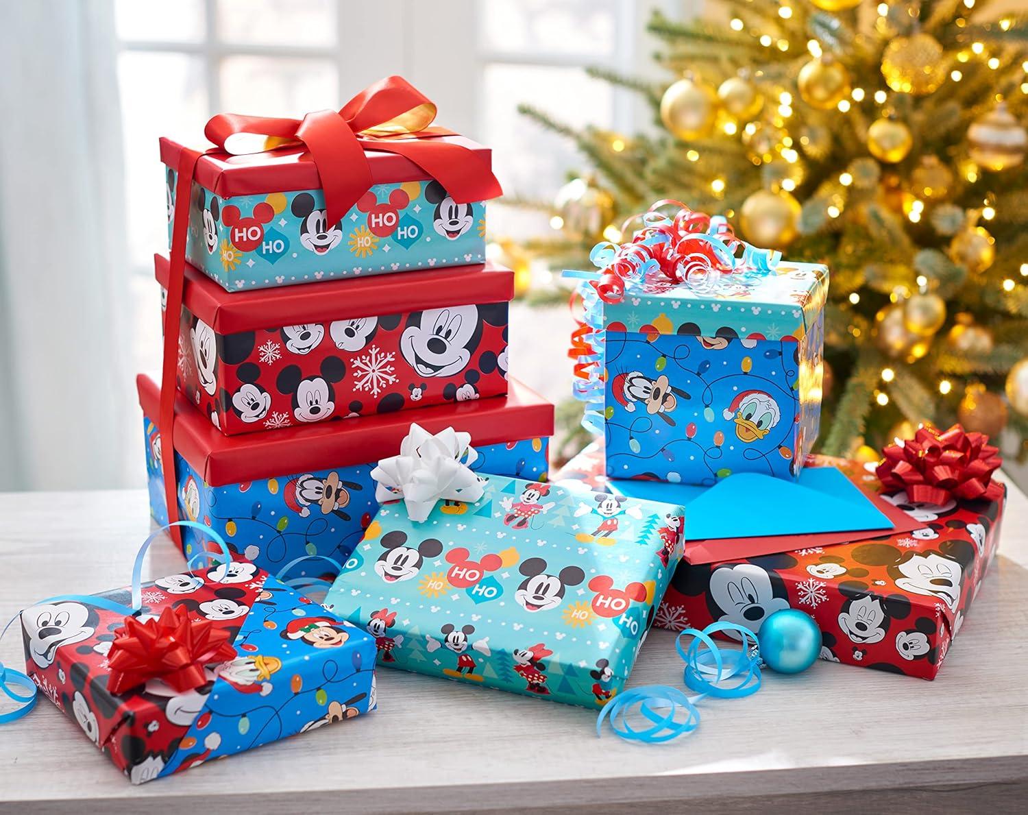 American Greetings Nightmare Before Christmas Christmas Wrapping Paper Rolls, Black and Red Holiday Gift Wrap (105 sq. ft., 3 Rolls-30 in. x 14 ft., Cut Lines) Jack Skellington, Oogie Boogie, Cosmo(Mickey Mouse)