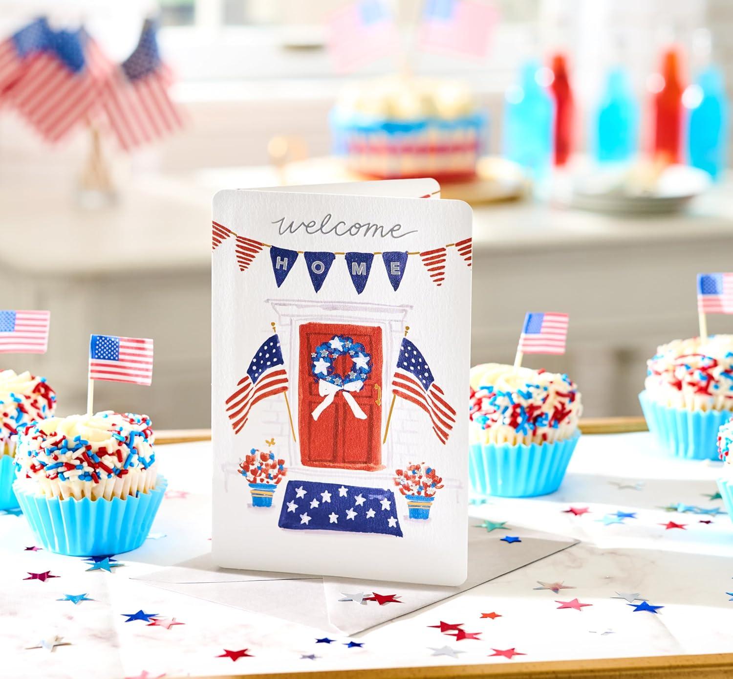 Express your gratitude to a beloved service member with this patriotic thank you card. Adorned with a vibrant array of stars in our national colors and the heartfelt 'Welcome Home' message, this card is perfect for celebrating a homecoming, deployment return, or boot camp graduation. The inside sentiment appreciates their dedication and sacrifice. Whether for an Army, Navy, Marines, or Air Force member, this card will surely touch their hearts. Envelope included. American Greetings offers exceptional greeting cards, gift wrap and celebration products so you can connect in ways that fit your personality and authentic style.