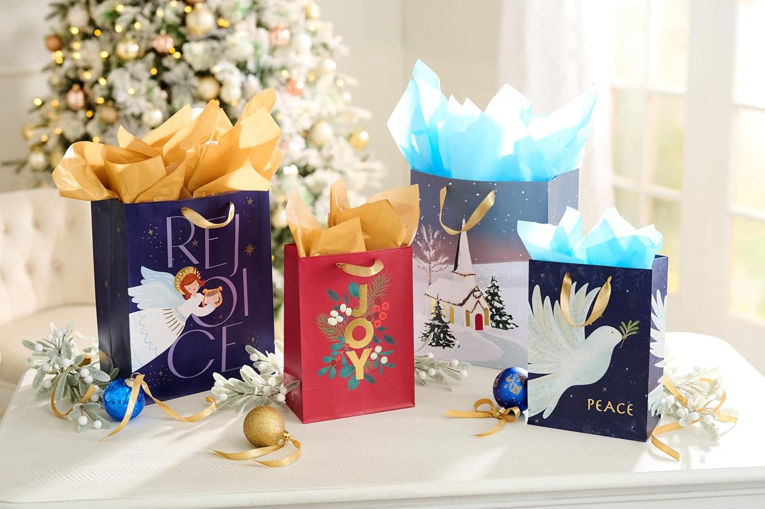 American Greetings Religious Christmas Wrapping Paper Roll, Navy Blue and White Holiday Gift Wrap (60 sq. ft., 1 Reversible Roll) Angel of Peace(MD LG XM RELIG BG BNDL 4CT)
