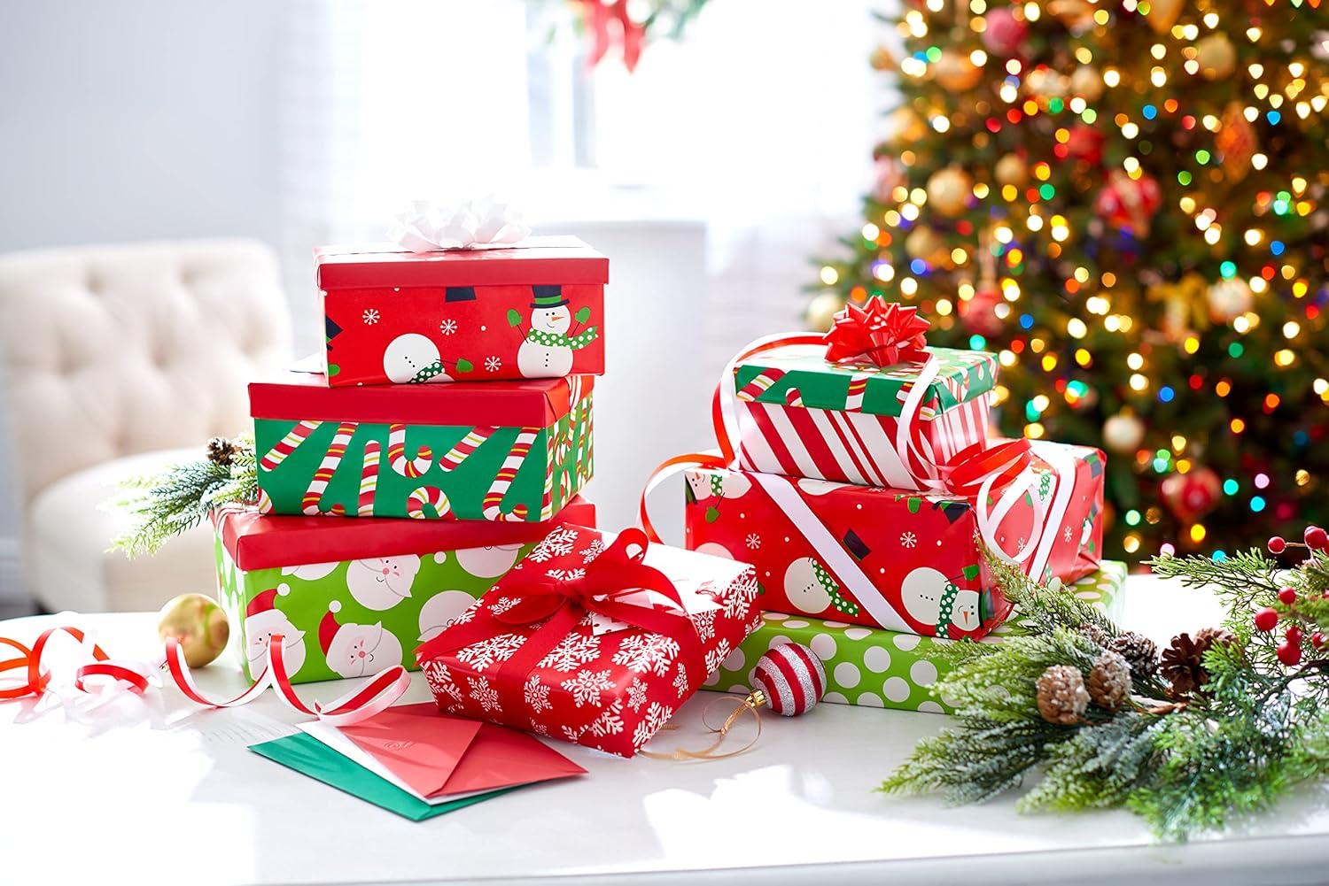 American Greetings Reversible Kids Christmas Wrapping Paper Rolls, Santa, Snowmen, Candy Canes, Red and Green Holiday Gift Wrap (120 sq. ft., 3 Wide Rolls-30 in. x 12 ft.) Stripes, Dots, Snowflakes(Santa Snowmen and Candy Canes)