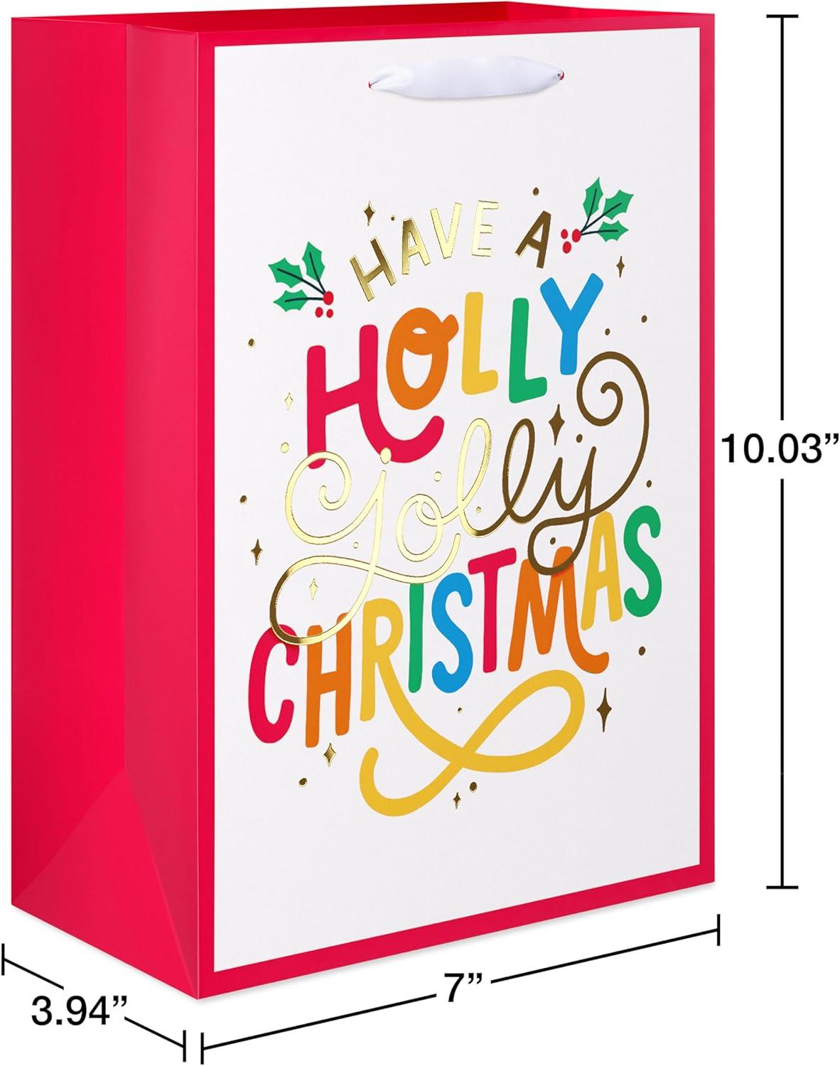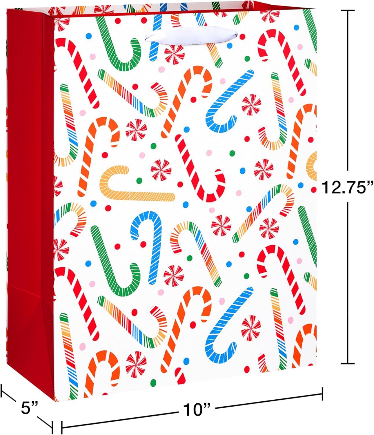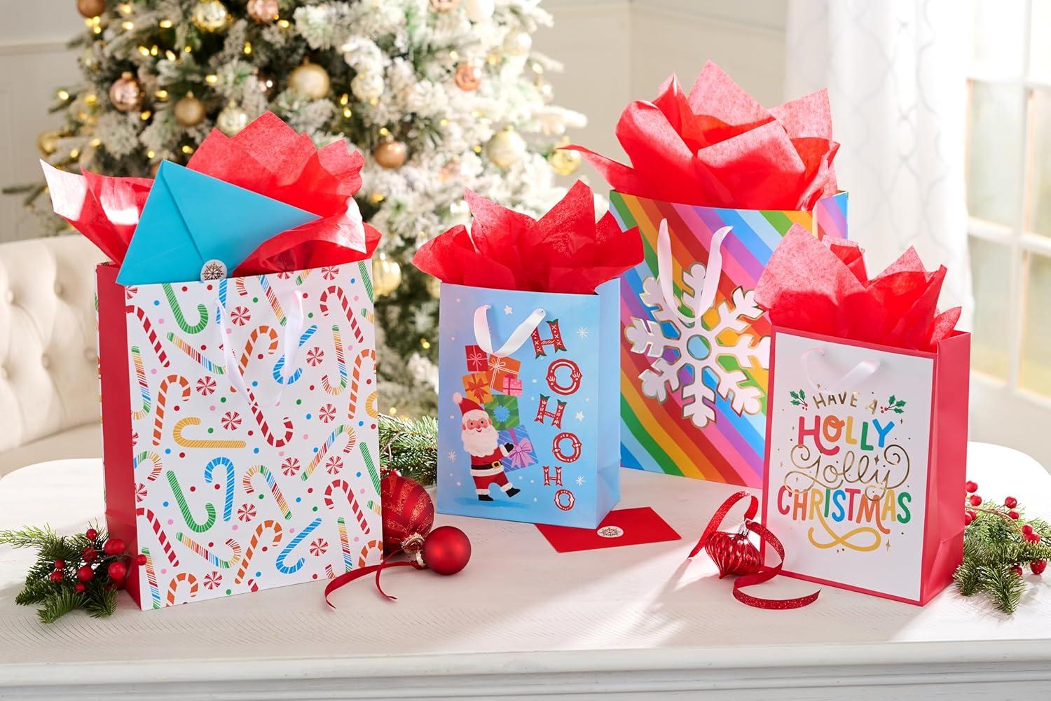 American Greetings Reversible Rainbow Christmas Wrapping Paper Roll, Colorful Holiday Gift Wrap (60 sq. ft., 1 Standard Roll Wrap-30 in. x 24 ft.) Rainbow Stripes, Snowflakes, and Dots(MD LG XM RAINBOW BAG BNDL 4CT)
