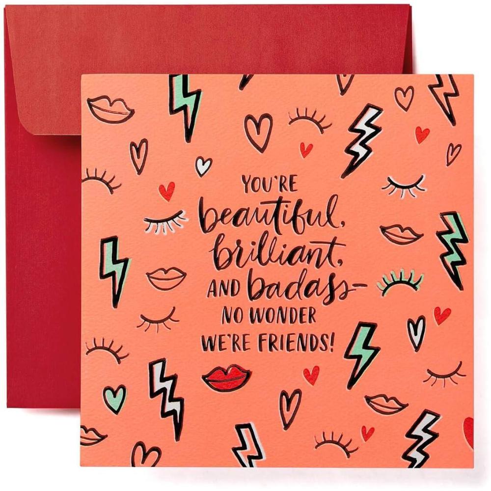 Let them know how amazing they are with this Valentine’s Day card from American Greetings. This adorable card features red polka dots on a light blue background, red metallic foil accents, and a heart with the words, “The world needs more people like you,” written in a banner. Inside, a heartfelt message about how absolutely wonderful of a person they are and how lucky you are to have them in your life. This is truly a card that anyone will appreciate. Give it to a relative, friend, neighbor, co-worker, or anyone else who needs to hear how special they are.