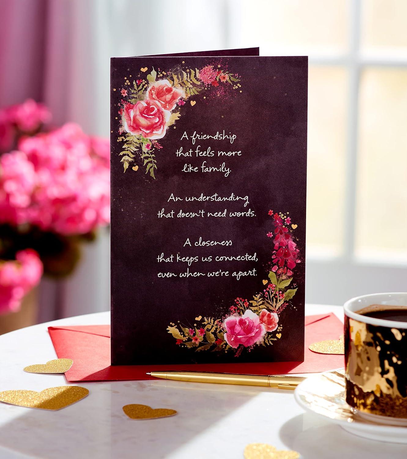 Thank your friend for all the wonderful things they do with this heartfelt Valentine’s Day card from American Greetings. It’s the kind of card that any friend would appreciate. With its delightful design of red hearts with red and silver metallic foil accents, this card is surely one to remember. The message is lighthearted, but super sweet and expresses gratitude for the friendship. Give it to your best friend and let them know just how much you care.