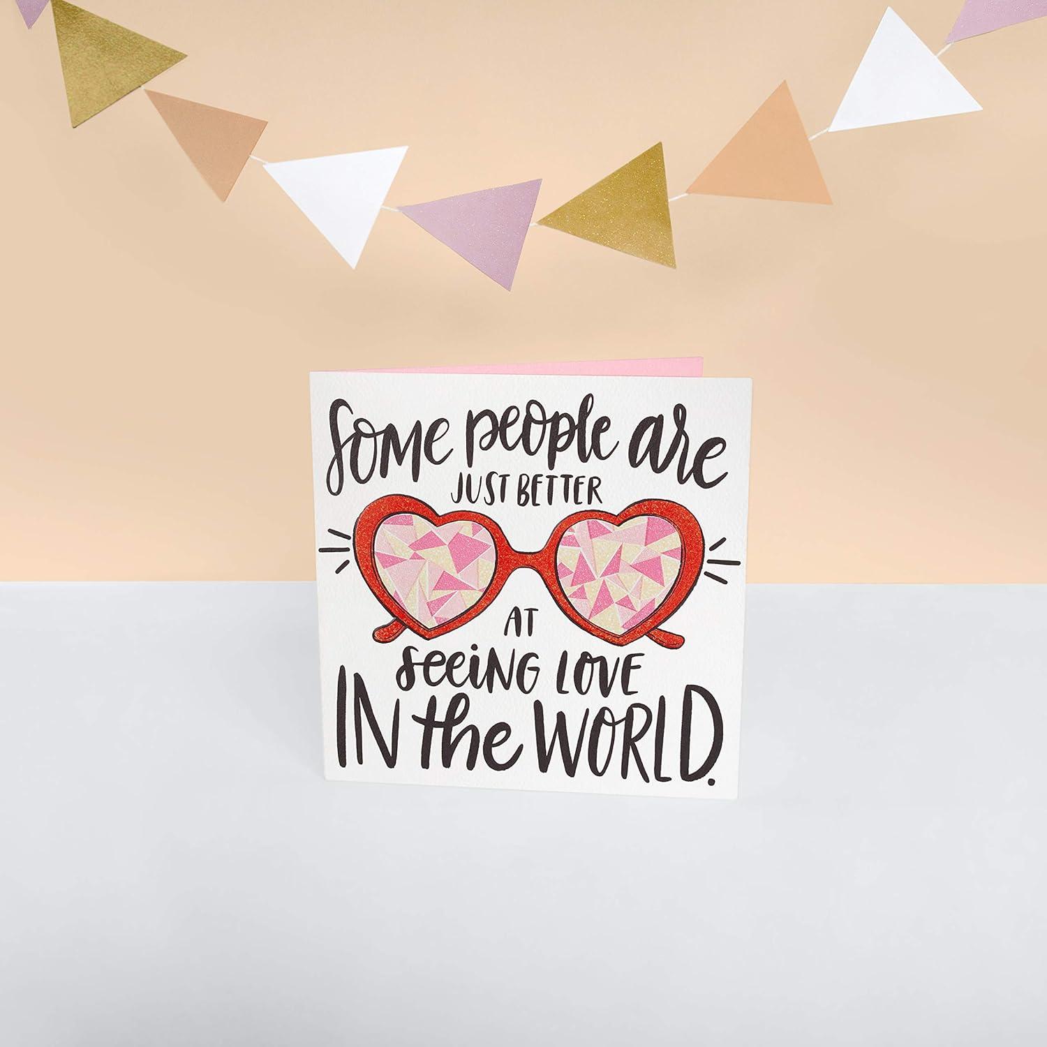 Perfect for sharing a sweet and meaningful moment, this Present Company card features a warm, love-themed message with trendy hand lettering and heart-shaped glasses. Thick, cotton-blend paper stock, dimensional embossing and prismatic foil accents enhance the message and design. Affix the unique seal to the outside of the red envelope for a bonus sentiment. It’s sure to make anyone smile, whether as a Valentine’s Day for a friend card, Valentine’s Day card, birthday card for her, friend card, congrats card or thank you card. With all the amazing people in your life, it’s always easy to share the love with Present Company!
