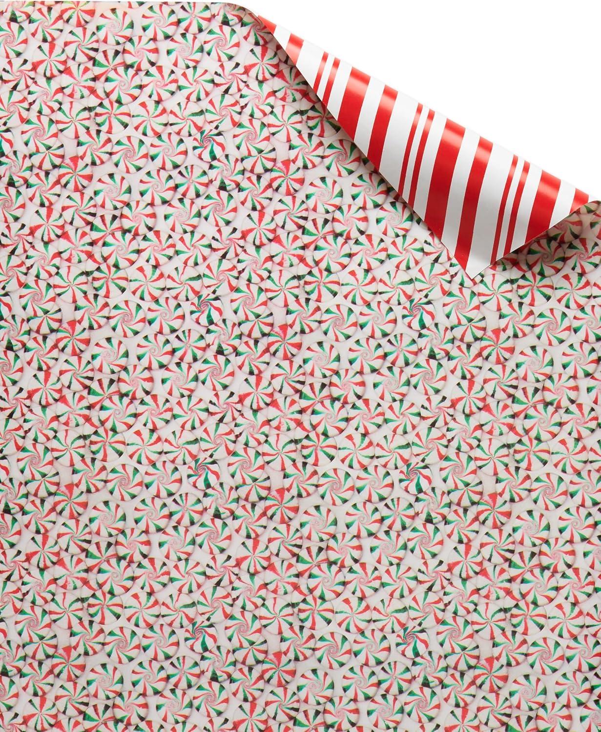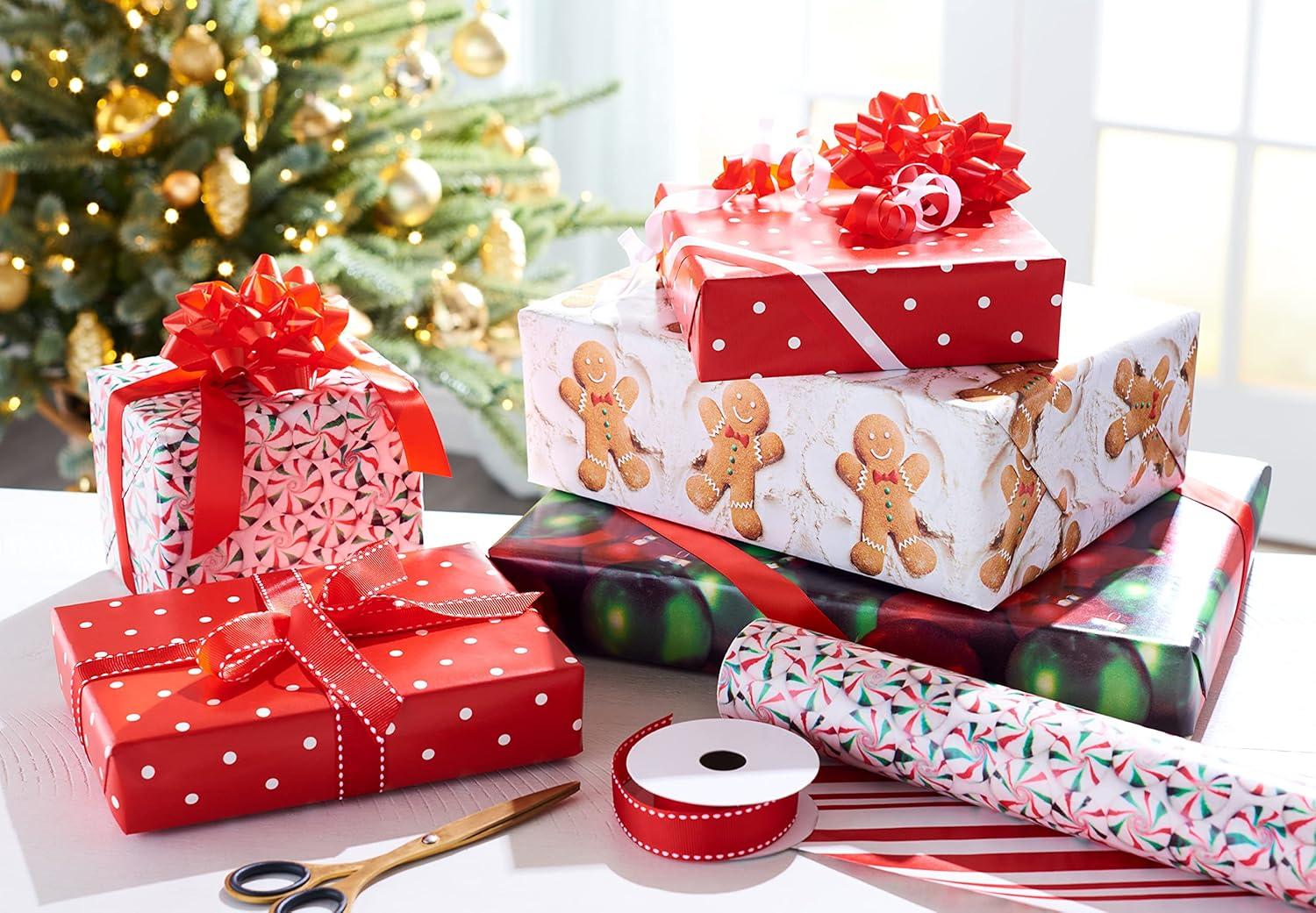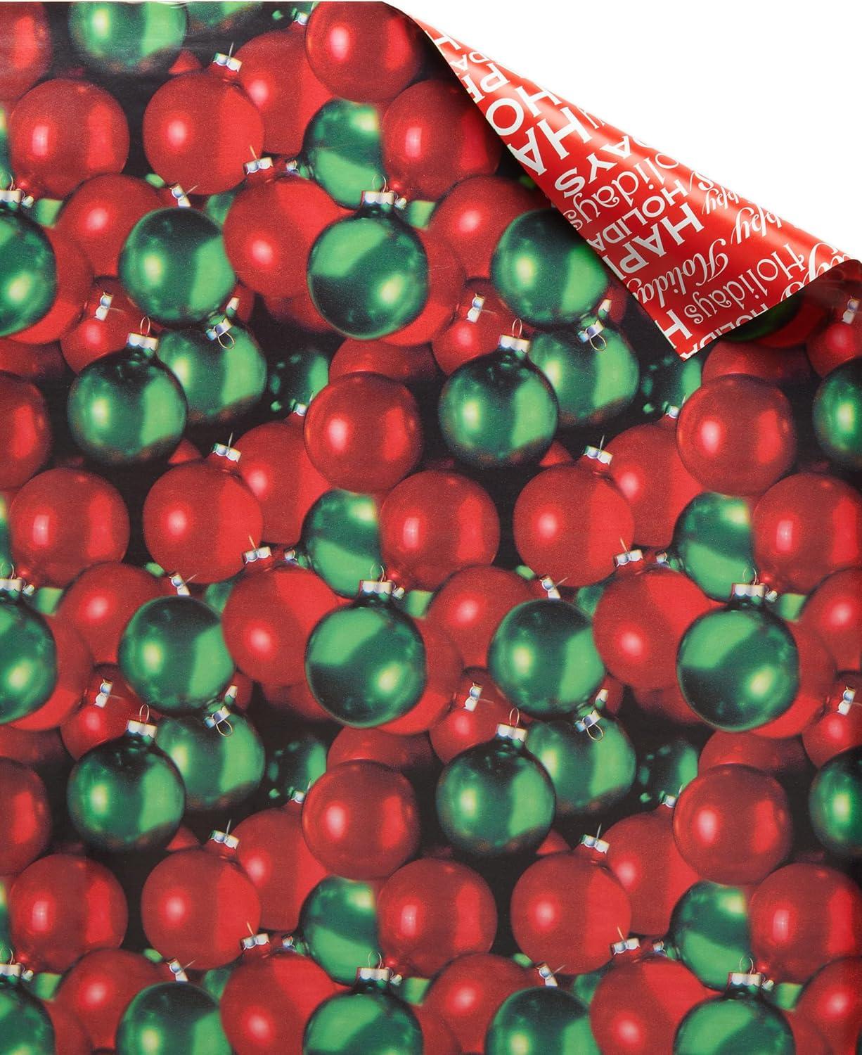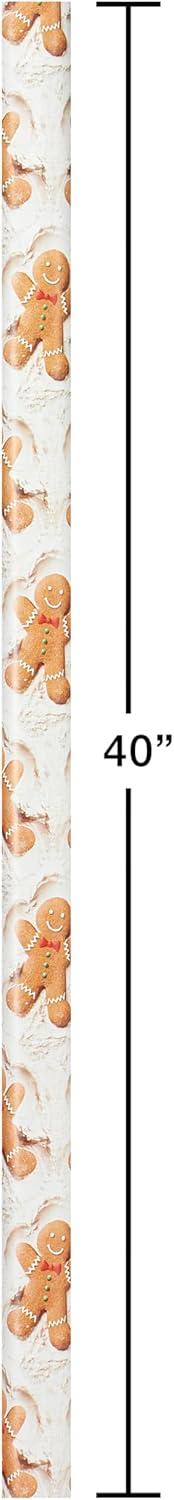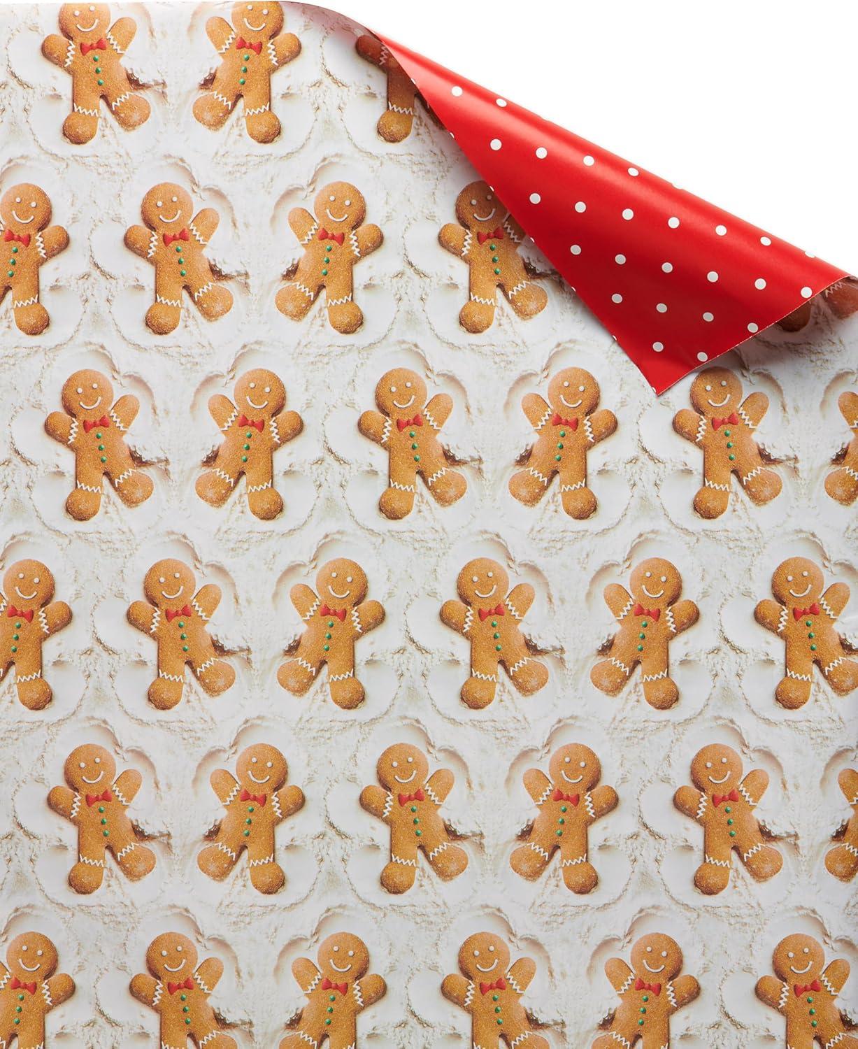 American Greetings Vintage Christmas Reversible Wrapping Paper Rolls, Traditional Holiday Gift Wrap (120 sq. ft., 3 Wide Rolls-40 in. x 12 ft.) Gingerbread Cookies, Glass Ornaments, Peppermints(Gingerbread Ornaments and Peppermints)