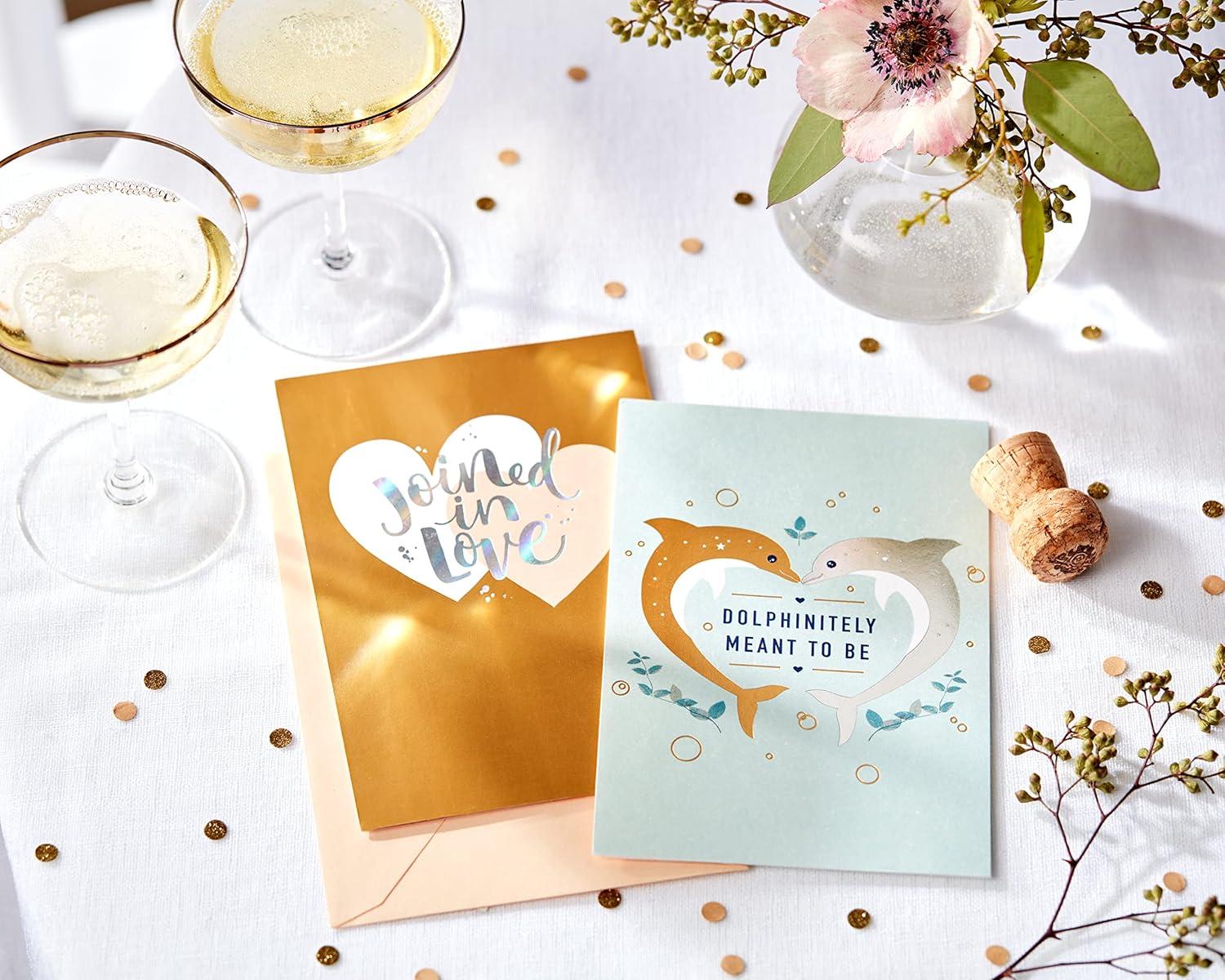 Celebrate the meant-to-be couple with this unique Wedding card from American Greetings! Contemporary card features a pair of kissing dolphins in a stylized design that’s embellished with silver and gold metallic foils and a fun pun! The smiles continue with the inside message. Perfect for a nature-loving couple or any fun-loving pair. Share your good wishes with this special Wedding card, only from American Greetings.